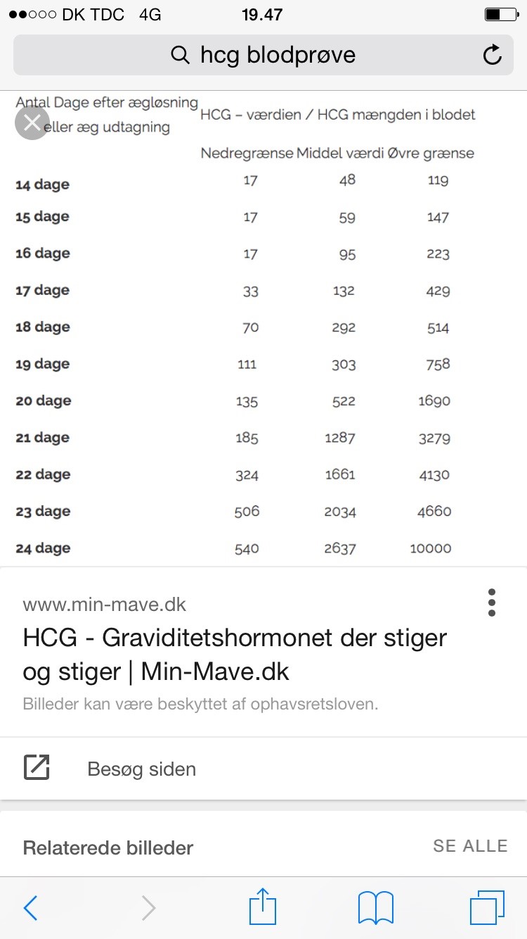 Ud fra de skemaer, som findes på forskellige sites, er der virkelig store udsving i HCG tallene... Har fundet et skema, og her må du jo være ca. 18 dage efter befrugtning, så dit tal er nok i den lave ende - men stadig inden for normalen