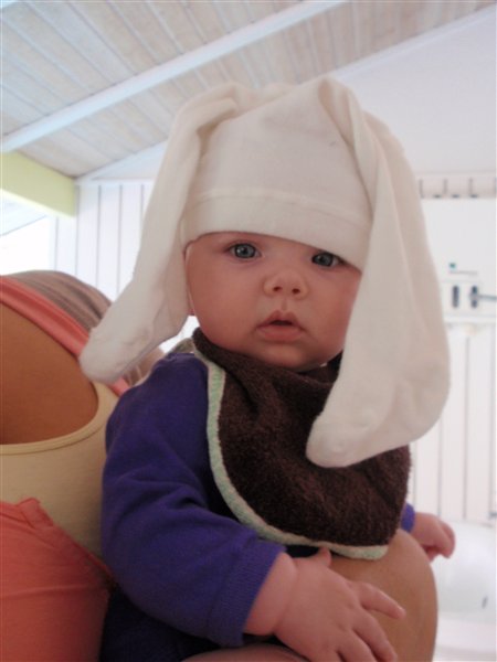 Hun er underskøn. Tænk at man kan være så glad for et barn, som ikke er ens eget. Vi har lige været i Løkken en hel weekend sammen, og hun var så dygtig hele tiden... Også med strømperne på hovedet, hi hi...