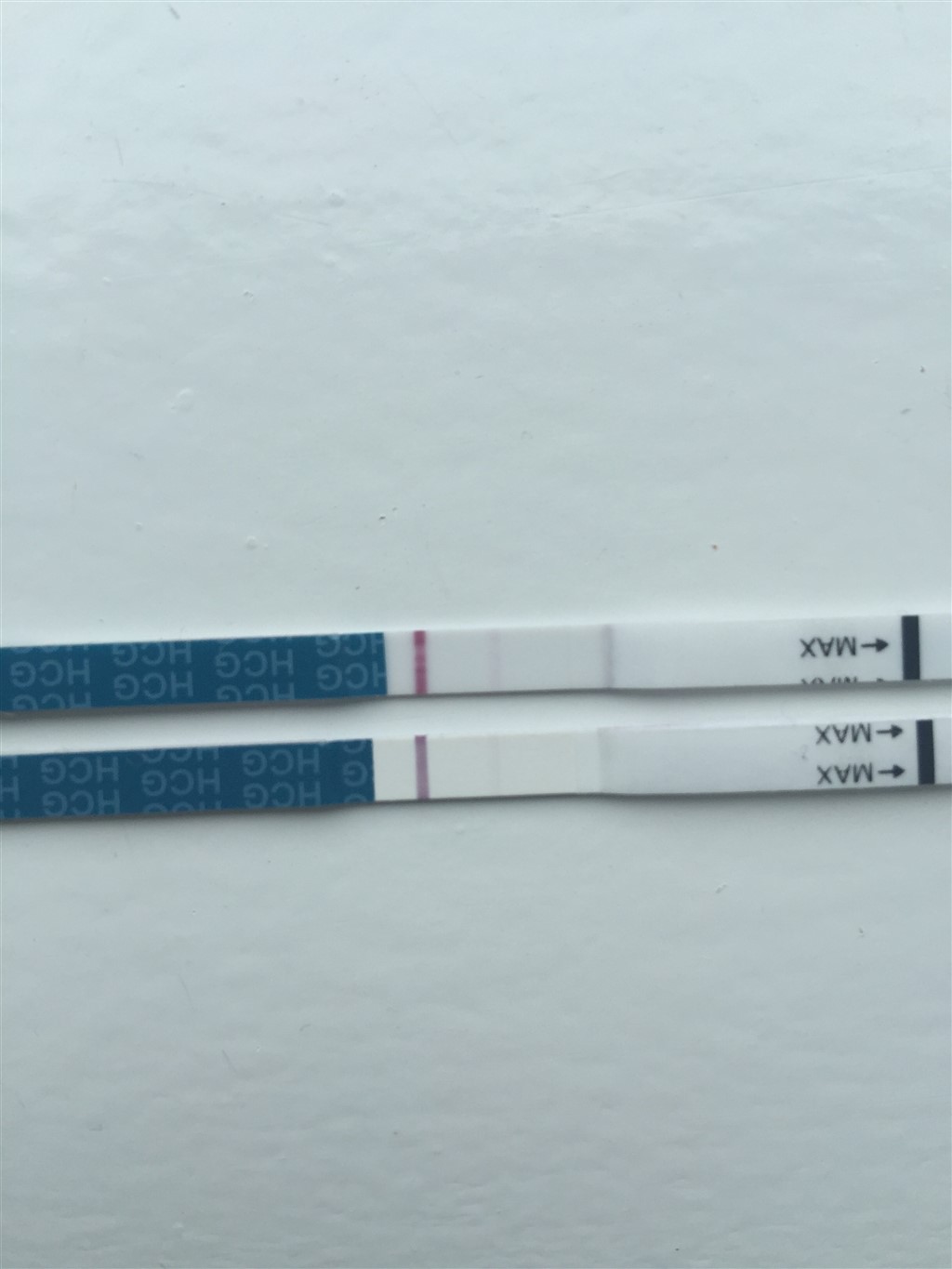 Cbc skriver: Hej alle i søde mennesker jeg tog imorges en graviditetstest fordi jeg idag er på dag 28 i min cyklus og jeg plejer at få menstruation på dag 27 i min cyklus, min kæreste og jeg startede PB for 3 måneder siden, jeg konstateret hurtigt at den var negativ og tog der efter til familie sammenkomst, jeg er så lige kommet hjem og ser at den test fra i morges har en lille streg, jeg tænker at den nok bare har lagt for længe og tager så en ny, og der kommer en lille lidt utydelig streg frem, dog med lidt farve i, jeg prøver self. Igen om nogle dage men hvad er jeres mening, er den der eller ikke? Det skal lige siges den jeg lige har taget kom stregen indenfor tiden