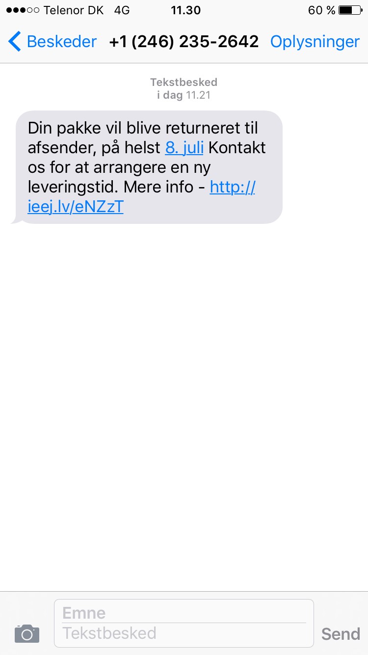Vi forventer to pakker fra to forskellige steder i dag. Det ene sted har vi ikke handlet med før. Men pga. Den mystiske sms jeg fik i dag, ringede jeg til stedet for at høre, om det var deres leverandør det kunne have sendt denne sms. Men det var det ikke kunne de forsikre mig om. Og er heller ikke gået ind på hjemmesiden. Den ser simpelthen alt for suspekt ud. Prøv lige at se den: