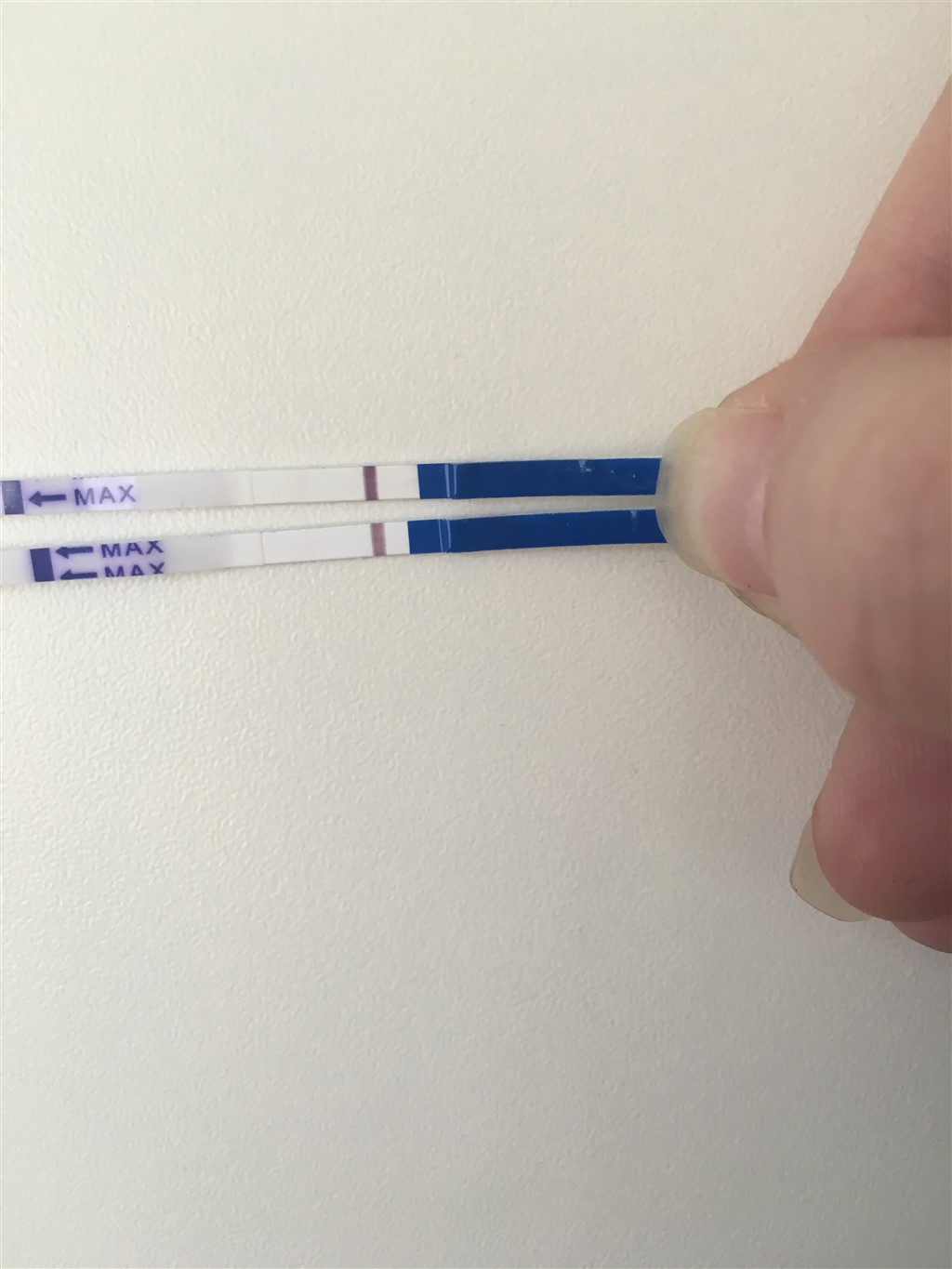 Den test fra i morges er blevet svagere. (Øverst på billedet)