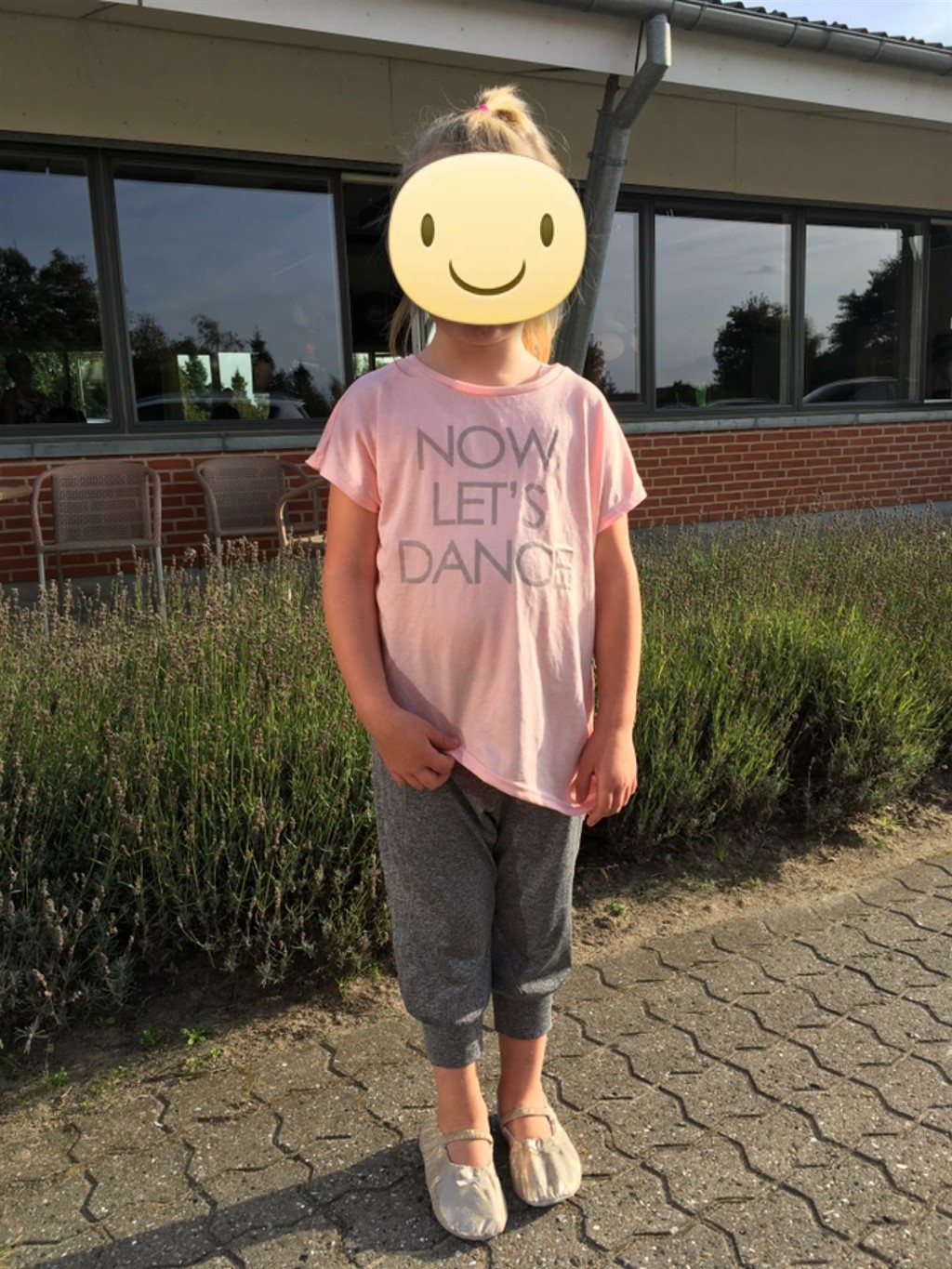 Jeg synes ikke at hun skal have en gymnastikdragt, men meget gerne nogle løse 3/4 bukser og en smart top, eller tights og en løstsiddende kjole.