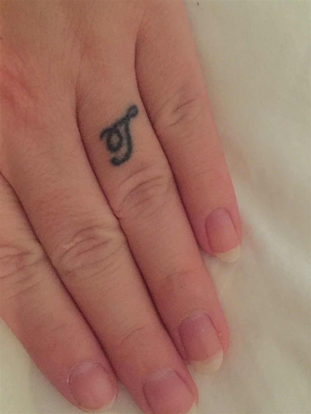 Jeg har et T for min mand på fingeren. Den er ulovlig, men det er ikke svært at finde en tatovør som vil lave den. Jeg har også en bagved øret.