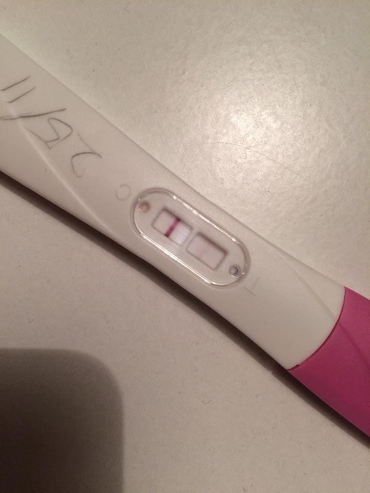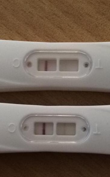 Jeg har normalt stabil mens. på 29-30 dage. Den skulle have været kommet onsdag den 23/11. Har ikke set skyggen af den og mærkes heller ikke som den er på vej. Jeg har taget et par graviditets test der har vist sig at være negative. I går aftes tog jeg en der var meget svag positiv efter et godt stykke tid og tog en til morges der også er svag positiv. Nu her mange timer efter jeg har taget dem, ser de ud som på billede.