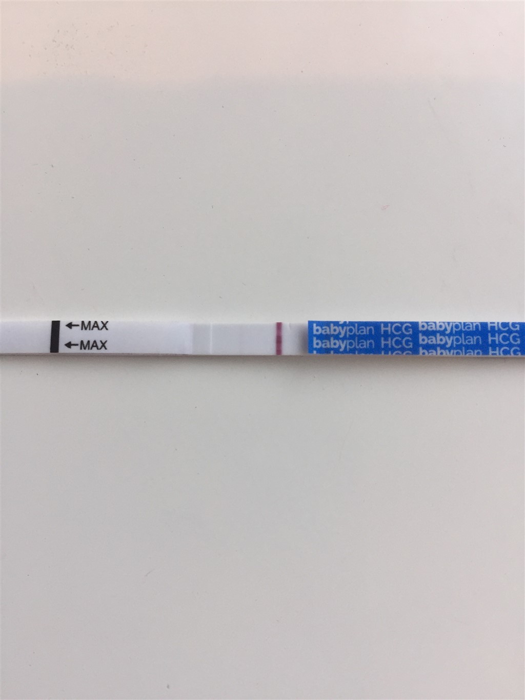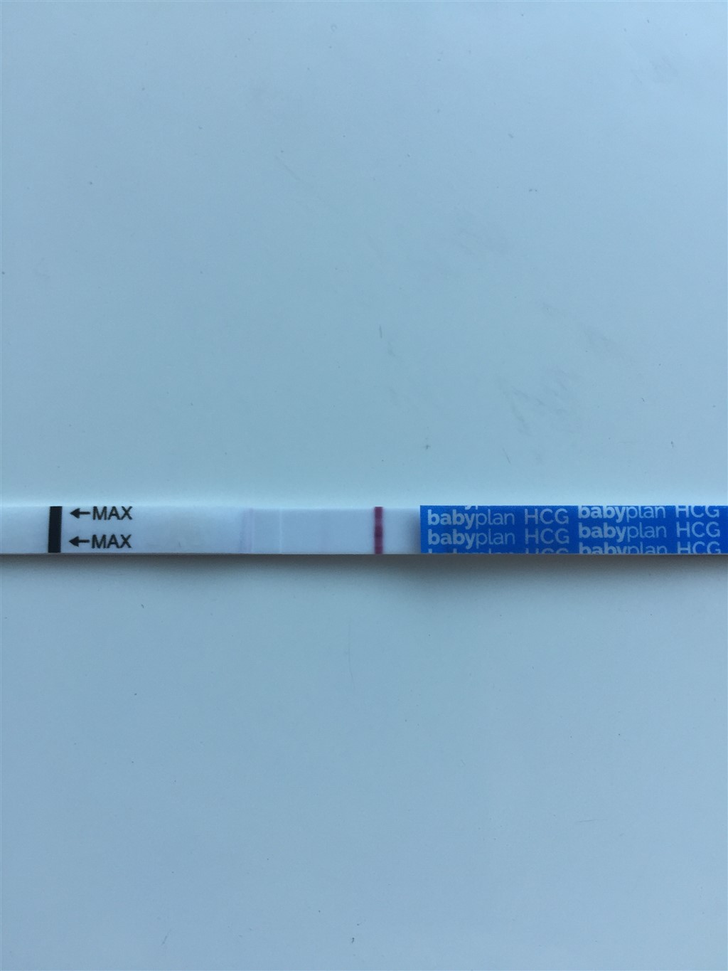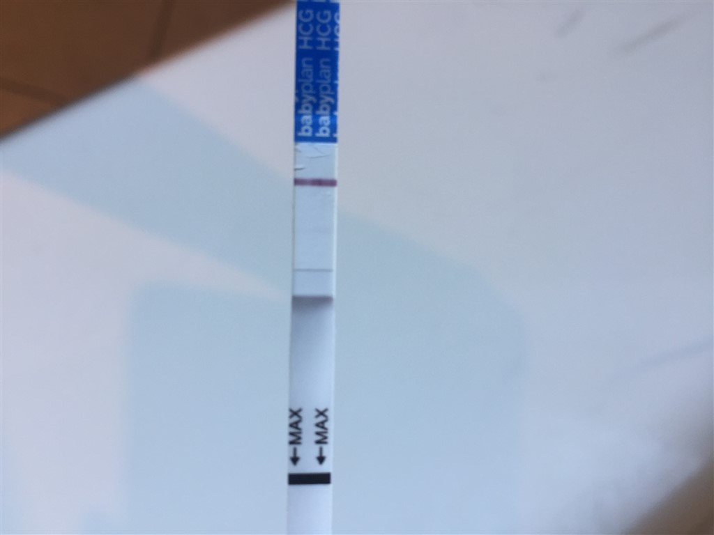 AnoMom skriver: Kan godt se en streg. Men tør ikke stemme positiv for kan ikke se farve i den. Måske en skyggestreg. Ville prøve at tage en ny test