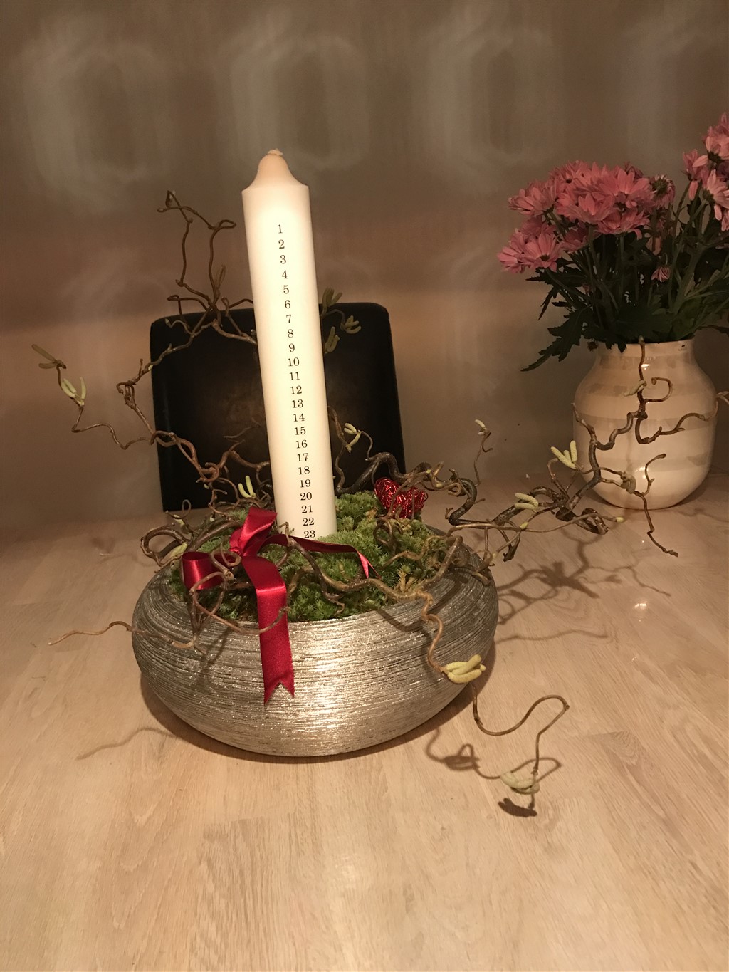 Jeg er ikke nået så langt, men her er kalenderlyset og adventskransen