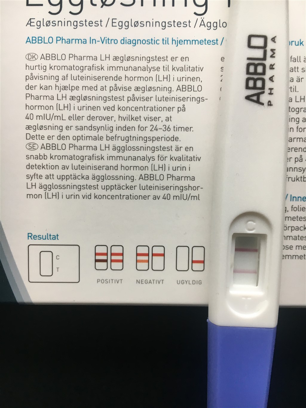 Anonym skriver: Er denne ægløsningstest positiv? jeg er blevet lidt forvirret, hvis den er positiv og man havde ubeskyttet sex idag, ville det så kunne være "det rigtige tidspunkt"?
