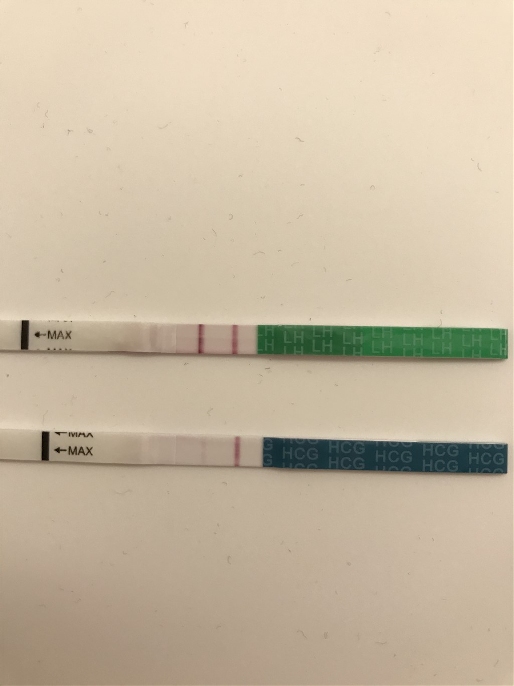 øverste test er en ÆL test og nederste er en graviditetstest.
