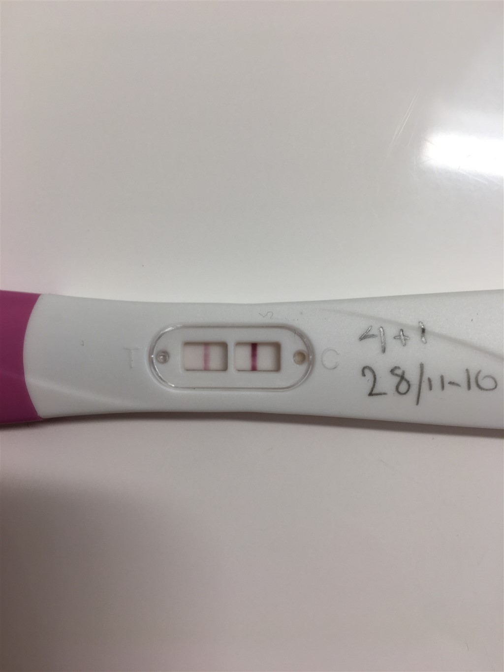 Den meget utydelige er fra efteråret hvor jeg desværre mistede barnet i uge 7. Testen på billedet er taget da jeg var 4+0.