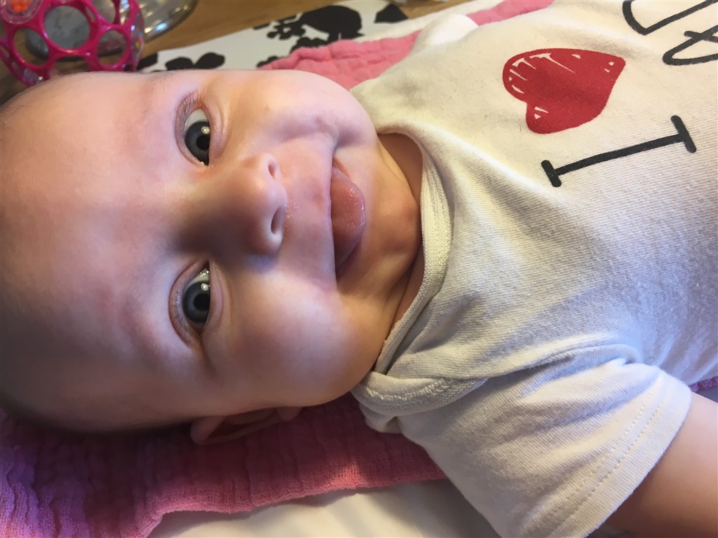 Jeg har en super sej datter. Hun fik 3 måneders vaccine i går, det første stik grinede hun sig igennem og ved anden stik skulle hun lige op 10 sekunder og så charmerede hun igen. Temperaturen kom op på 37,6 og hun blev på intet tidspunkt pjevset!