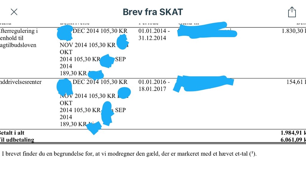 nå, men det der undrer mig er at det de siger vi skylder penge for, er tilbage fra 2014?!? Og et beløb vi ikke har hørt om før. Skylder vi de penge er det fair, men lidt sent.