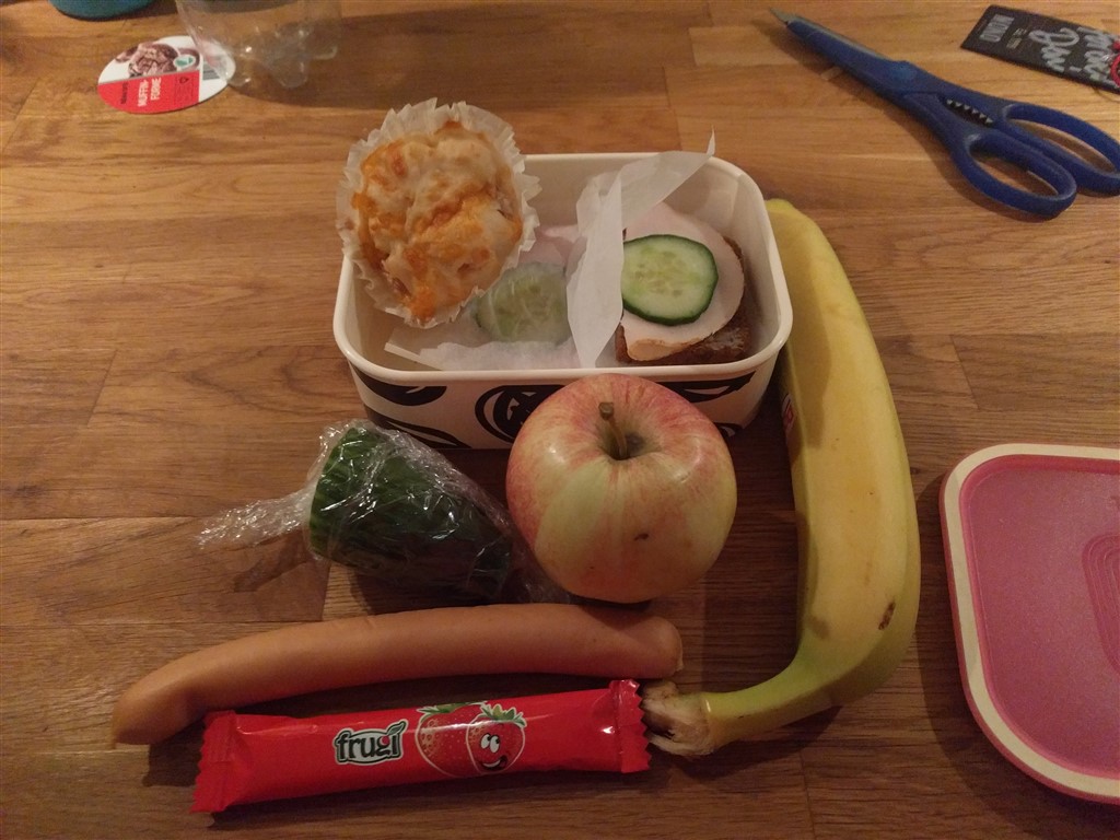 Når hun skal starte i skole skal hun have 3 madpakker med, formiddag, frokost og en til om eftermiddagen i SFO.