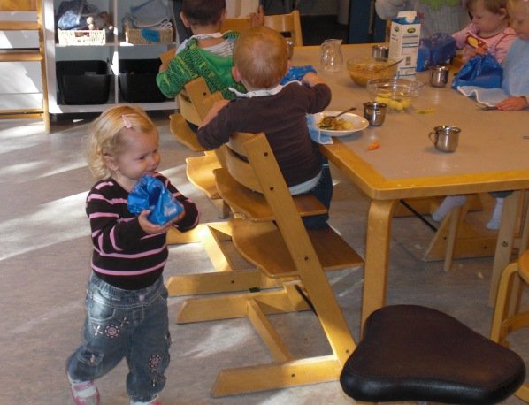 foto 5 = Bianca deler fødselsdags-gufposer ud henne i vuggestuen