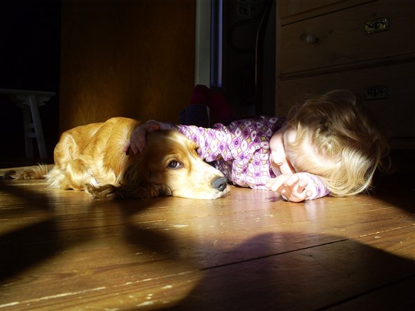 De sidste par billeder du har sat ind er bare super gode, hvor de ligger og maler sammen, og det hvor den mindste nusser på gulvet med hunden
