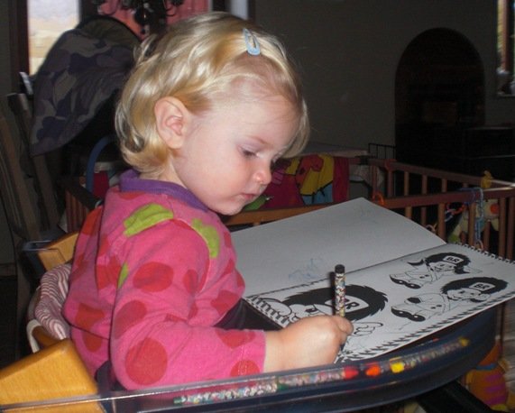 BIANCA maler i sin nye "fætteerBR" malebog, som hun fik i fødselsdagsgave, fordi hun er medlem af "fætterBR-klubben"