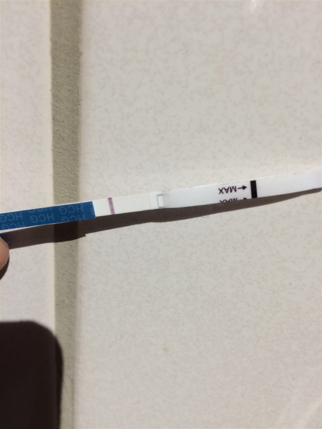 Synes jeg kan se en meget utydelig streg, men lige nøjagtigt med den test har jeg ofte selv oplevet skyggestreger efter tid, når den er tørret, og der var jeg ikke gravid - har oplevet det flere gange, nok på 4-5 test af præcis den type, som du har brugt. Mine skyggestreger var endda tydeligere end din. Da jeg så endelig var gravid, kom der en fin tydelig streg med det samme indenfor tid. Så jeg ville ikke stole på den men vente og se om mens kommer/prøve at teste senere