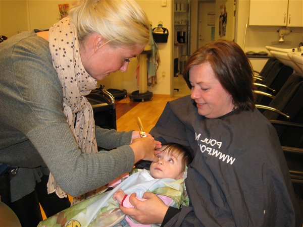 frisøren for første gang. Hun fik bare klippet sit pandehår, det var vokset ned i øjnene på hende.