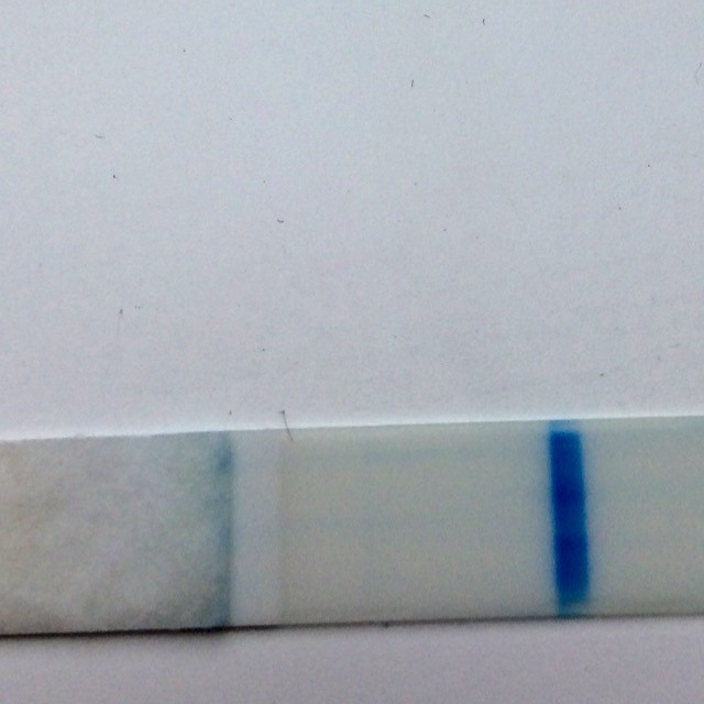 Sagen er den at jeg de sidste 4 dage har testet svagt positivt på strimmelteste fra billigteste, men jeg synes ikke rigtig de har udviklet sig. Så idag købte jeg en fra apoteket og efter 5 min så den ud som på billedet nedenfor. Er den svag postitiv eller skyggestreg?