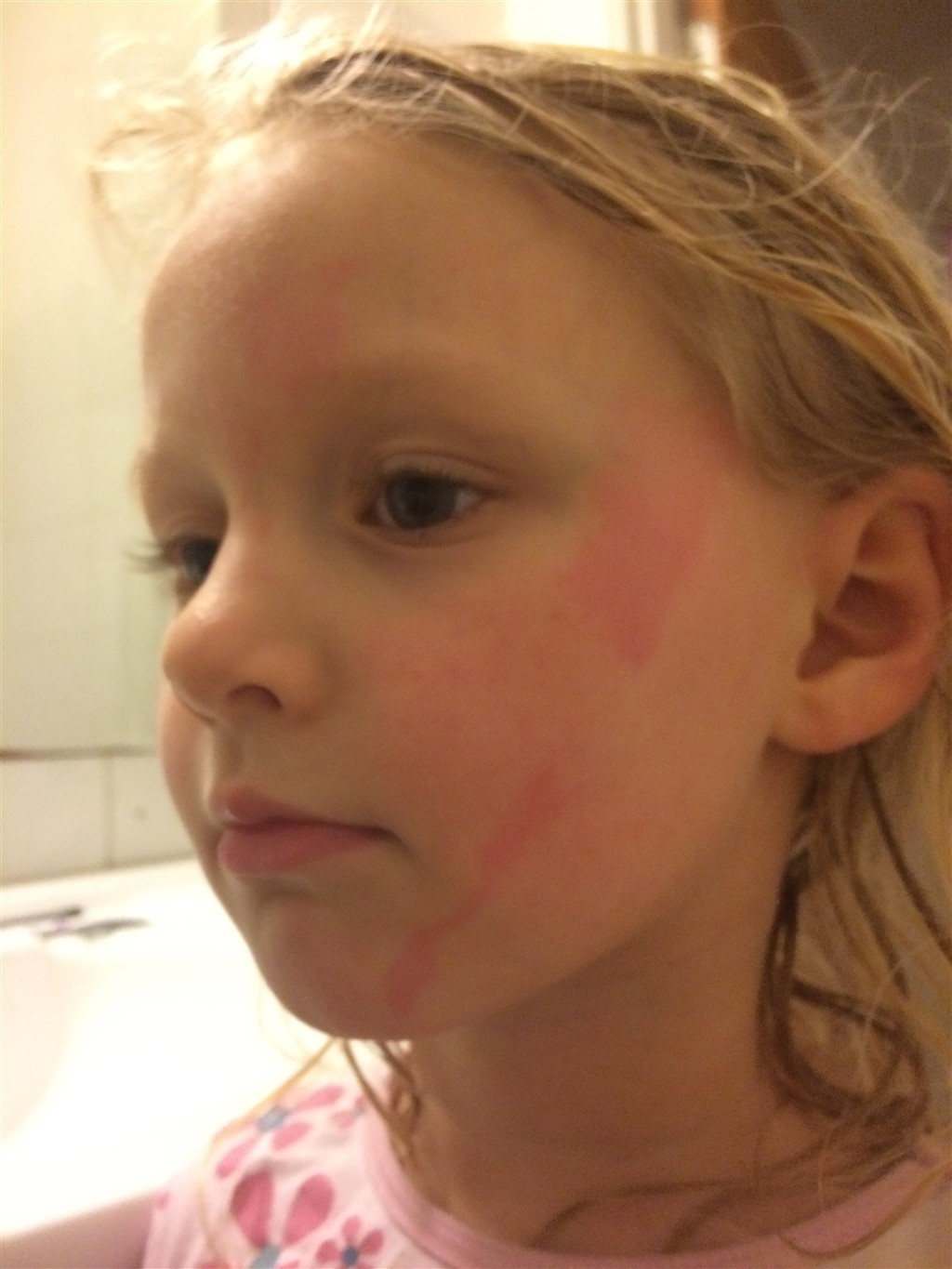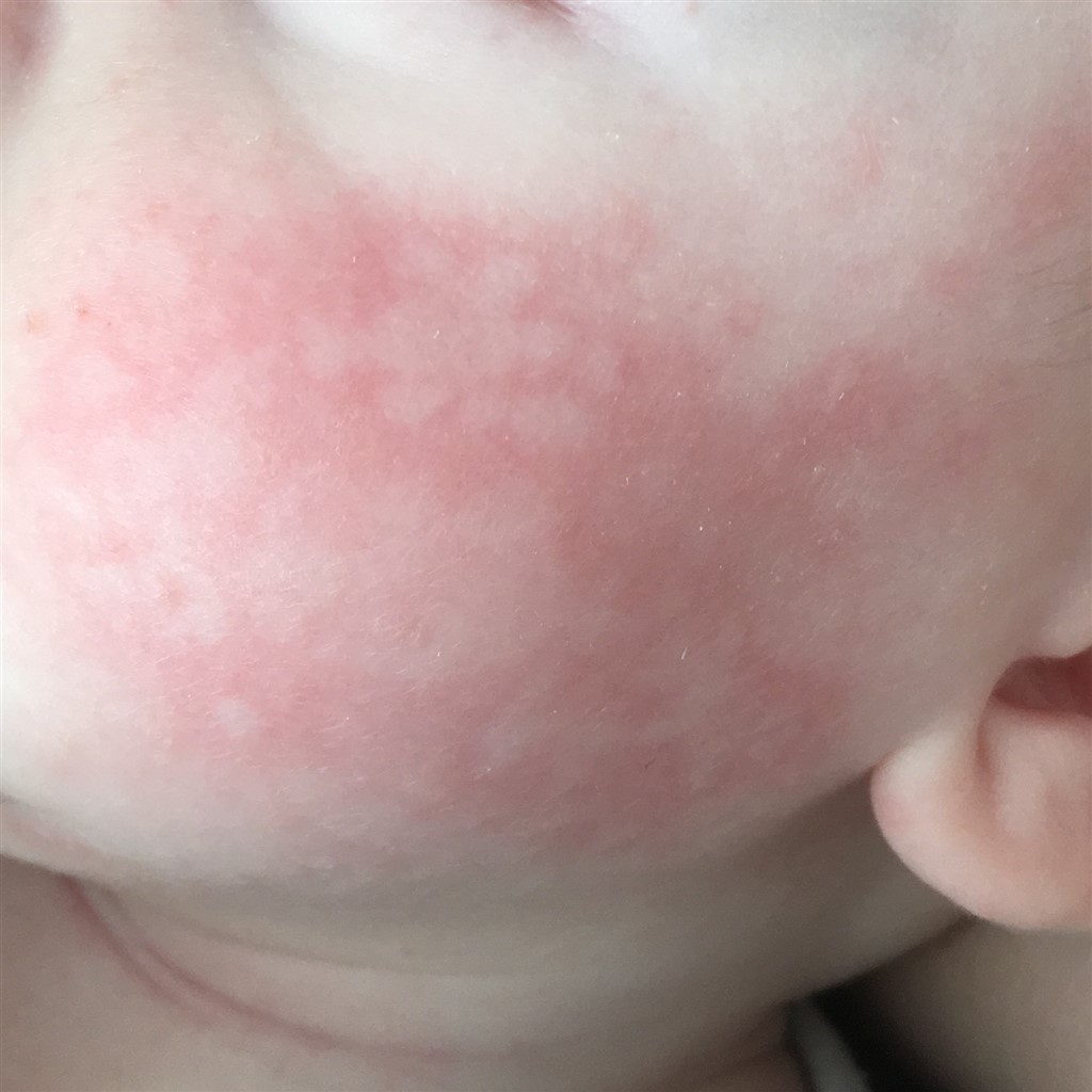Håber alle I garvede mødre kan hjælpe. Nogen der ved, hvad dette er? Min søn på tre måneder har det i ansigtet. Det kommer og går som vinden blæser. Nogle gange fylder det meget af ansigtet og andre gange er det bare en lille plet. Han er flaskebarn, men det er først den seneste uge, at dette er startet, så tænker ikke at det er allergi overfor det?