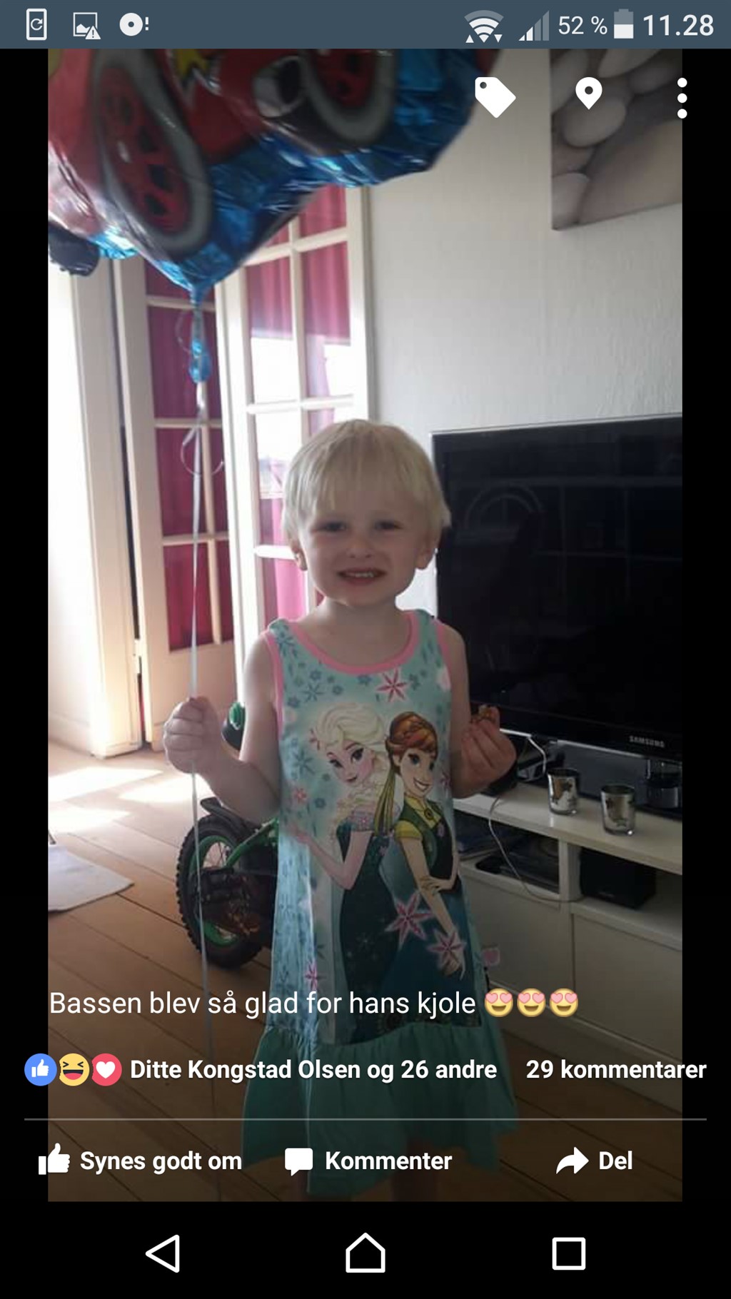 Nu er hun så begyndt at have en (meget stærk) mening om hvad hun vil have på, så den står mest på kjoler, nederdele og meget pigede bluser. Men er hun med ude og handle, og falder dor noget "drengetøj" så får hun det da uden diskution.
