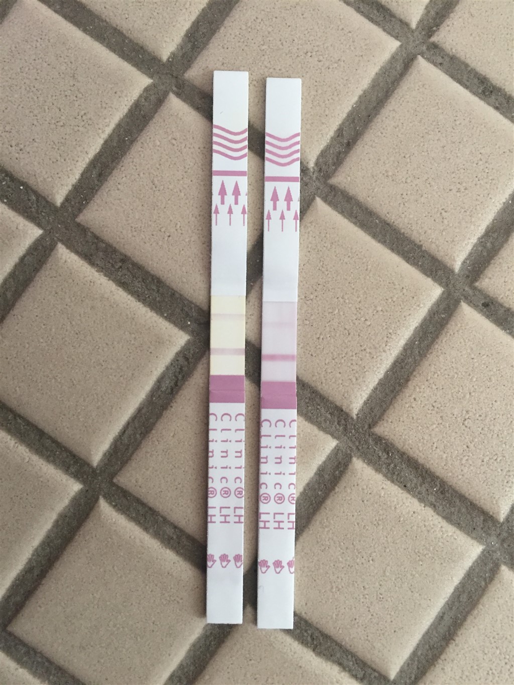 vi prøver herhjemme og få en nr to. Denne grund med ægløsningsteste, men jeg forstår dem slet ikke. For min test fra igår er mere positiv end den idag. Den til højre er fra idag og venstre fra igår.