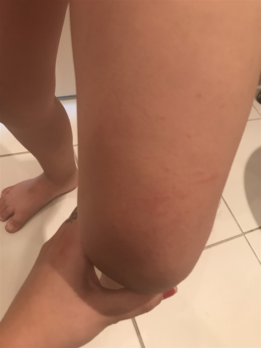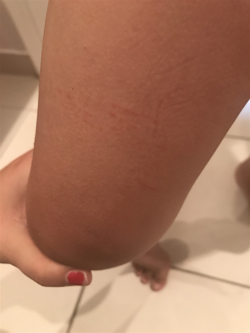 Min datter på 5 har over de sidste 2 dage fået dette (se billede) hun siger det svier. Vi her ikke skiftet vaskemiddel eller andet. Har i nogen ideer? Vi passer hund, kan det være allergi?