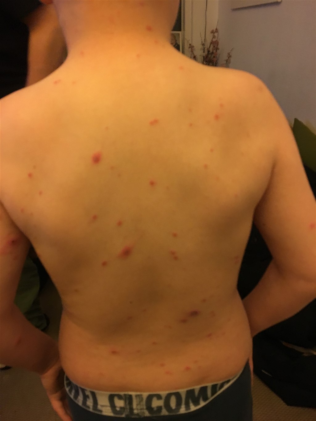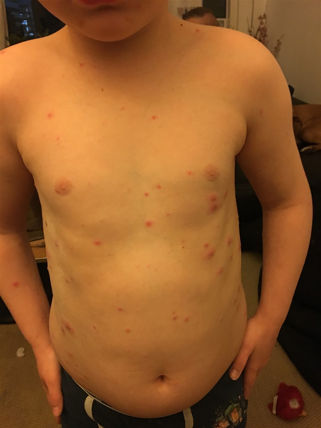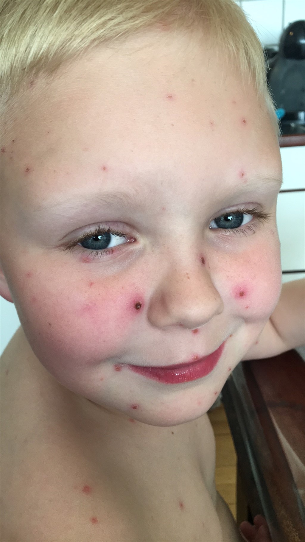 nilletøz skriver: Er ikke sikker, men det kunne det godt ligne.. men synes også det kunne ligne varmeknopper. min søn på 8 har lige haft dem.. han så sådan ud da det var værst