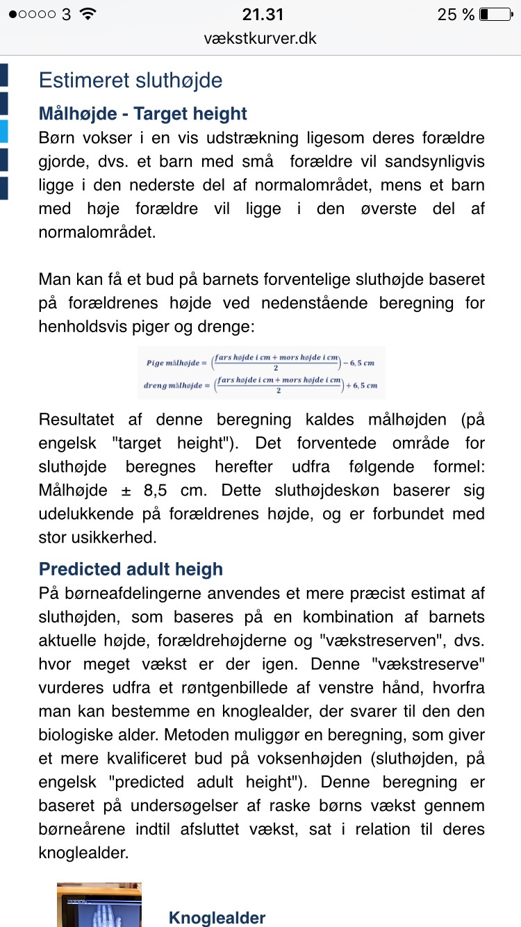 for drenge: målhøjde = (fars højde + mors højde) / 2 + 6,5