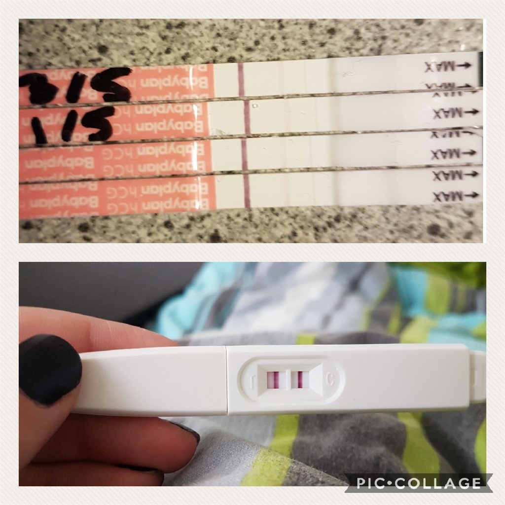 Jeg tog så en anden test . De alle sammen blev flot positivt inden for 1 min og stregen kom også 10 sek efter urinen blev suget op kunne jeg ane stegen ville komme .