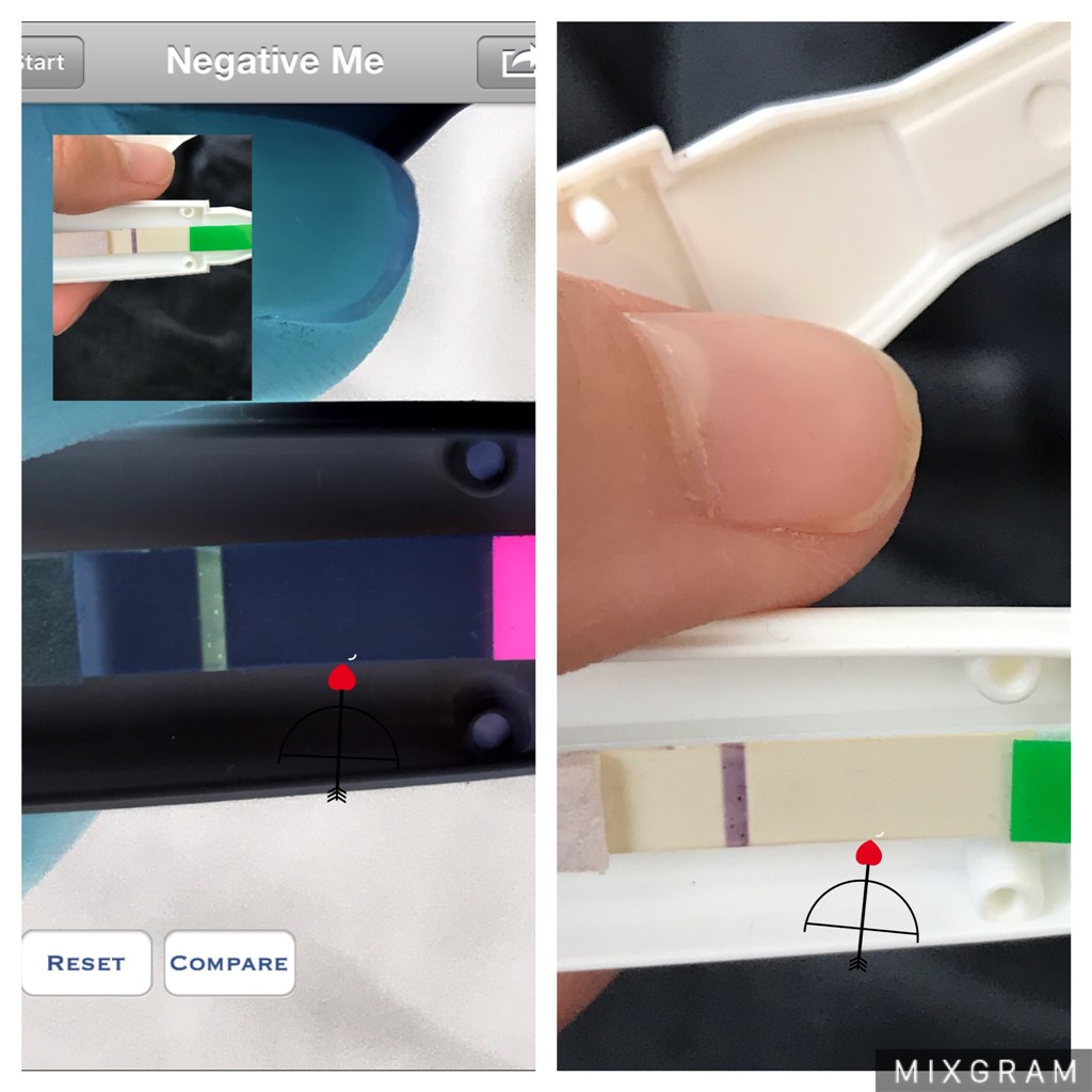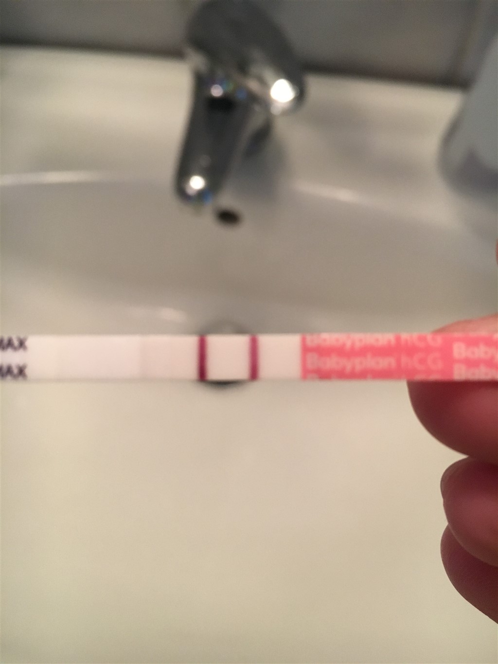 Dog kan jeg vedhæfte et billede af min den første test (3+2), som var meget svag og næsten usynlig, og så en test fra to dage senere (3+4) og så en test jeg tog i sidste uge engang (er 7+0 i dag, og vi så hjerteblink for en uge siden).