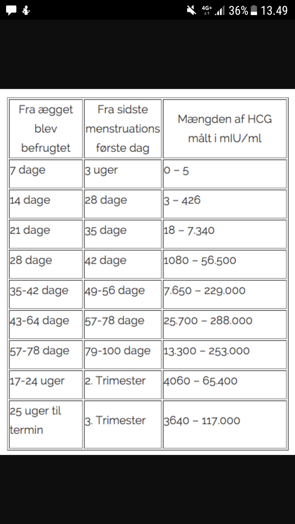 Til dig, der har en veninde, der testede positivt i uge 30, så er det, fordi hcg er faldet igen på det tidspunkt, hvilket også fremgår af tabellen.