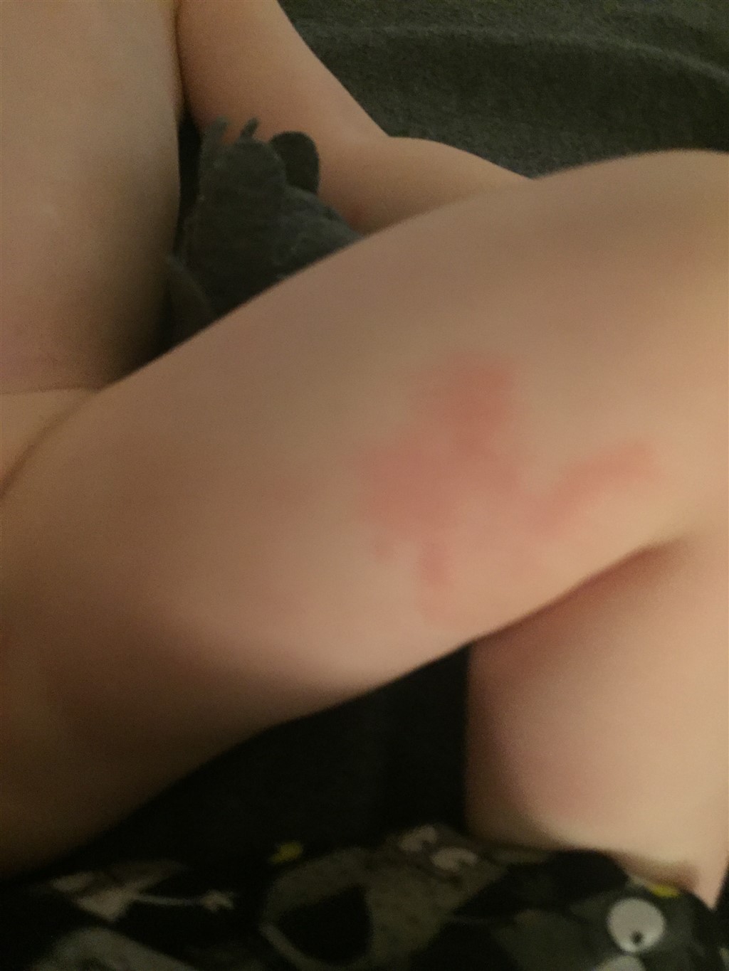 min søn på 2 år har fået er underligt tørt udslæt på inderlårene. De begyndte for lidt over en uge siden hvor det ikke var større end en 2 krone. Nu er han kommer hjem efter en uge hos far og det er blevet rigtig stort.