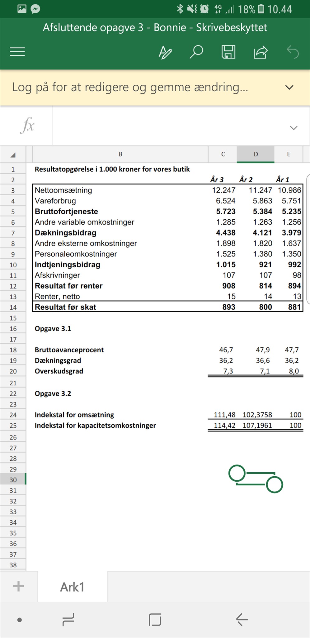 Ja, men tror der skal fyldes mere på i spørgsmål 3 og der er vel sket en positiv og negativ udvikling i og med at kapicitetomkostningerner er højere end omsætning (den stiger i procent for hvert år) det jo skidt. Det er negativt ikke