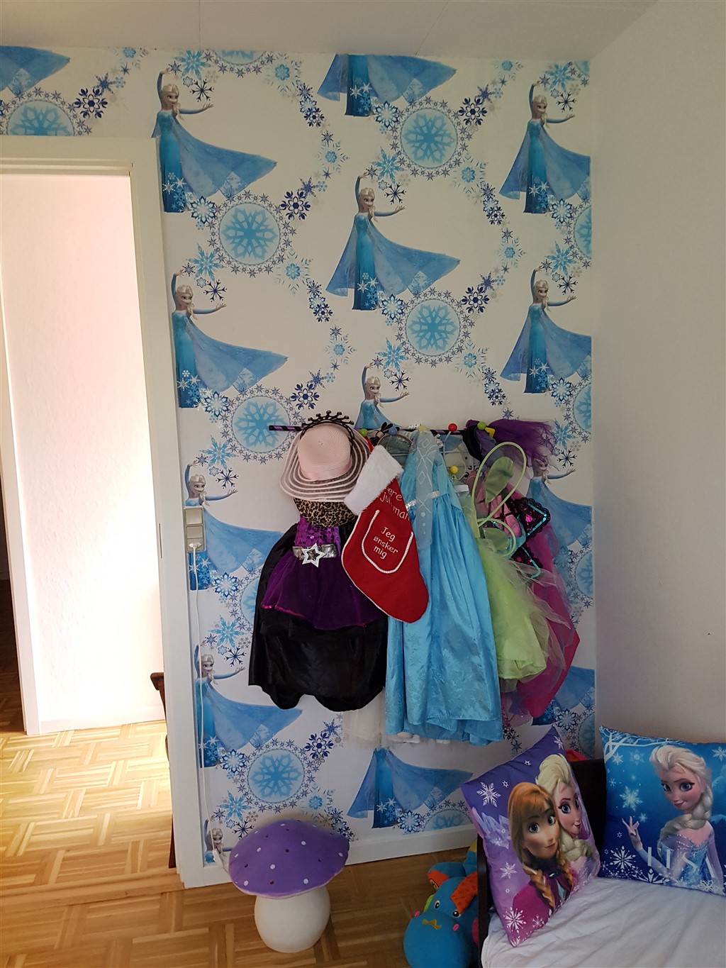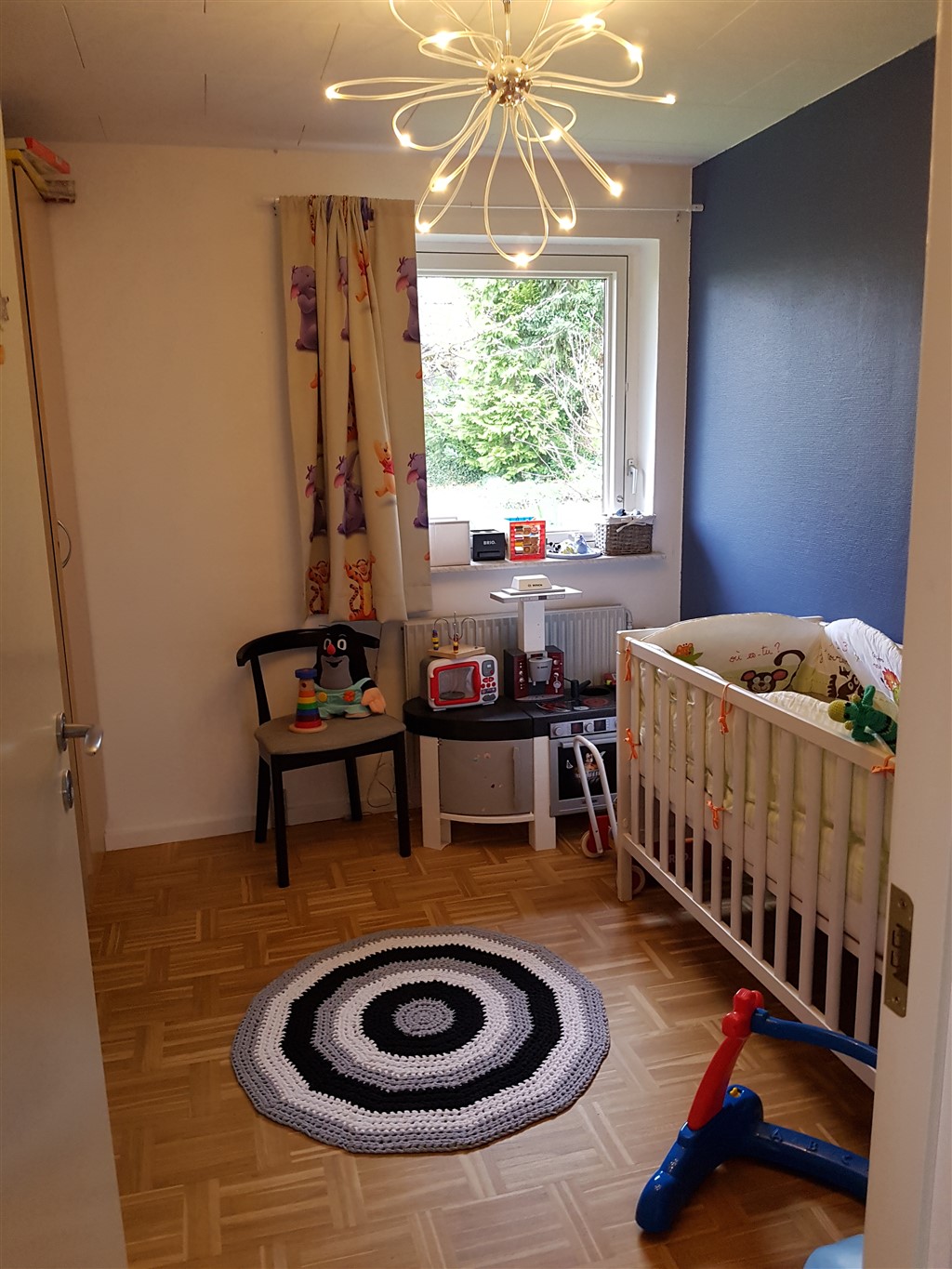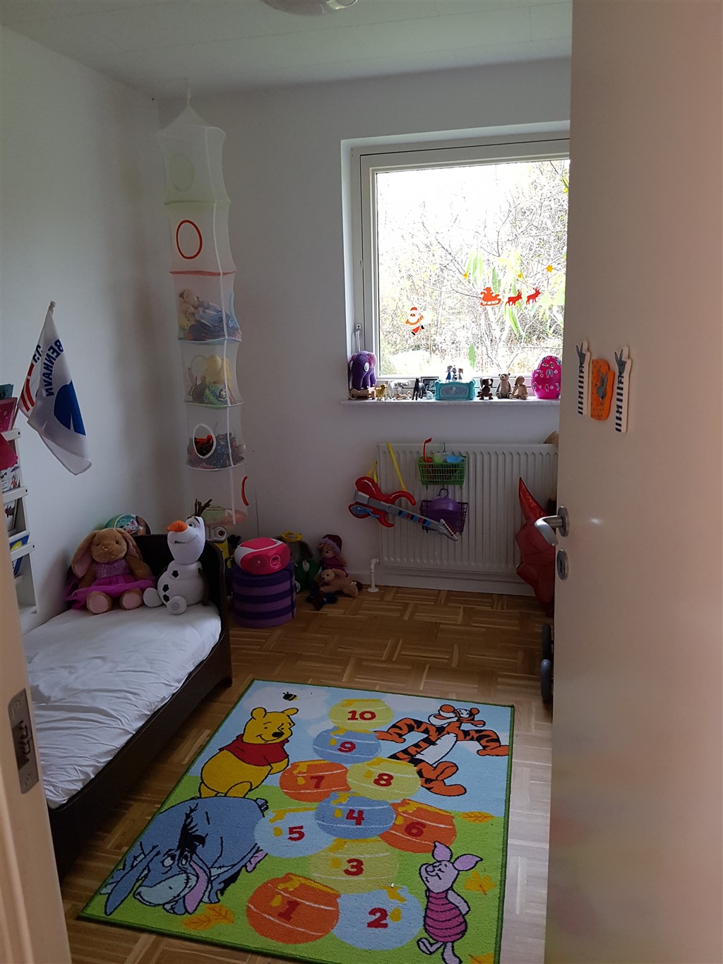 Jeg har også små værelser, 10-11kvm. Der står en seng, klædeskab, ikeareol med 4 rum med kasser i. En hylde oppe over. En tallerkenrække til bøger. En kurv til bamser, og en kurv til bolde.