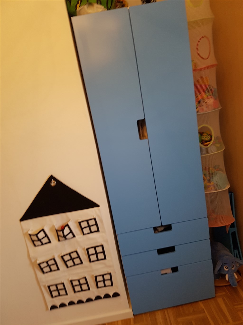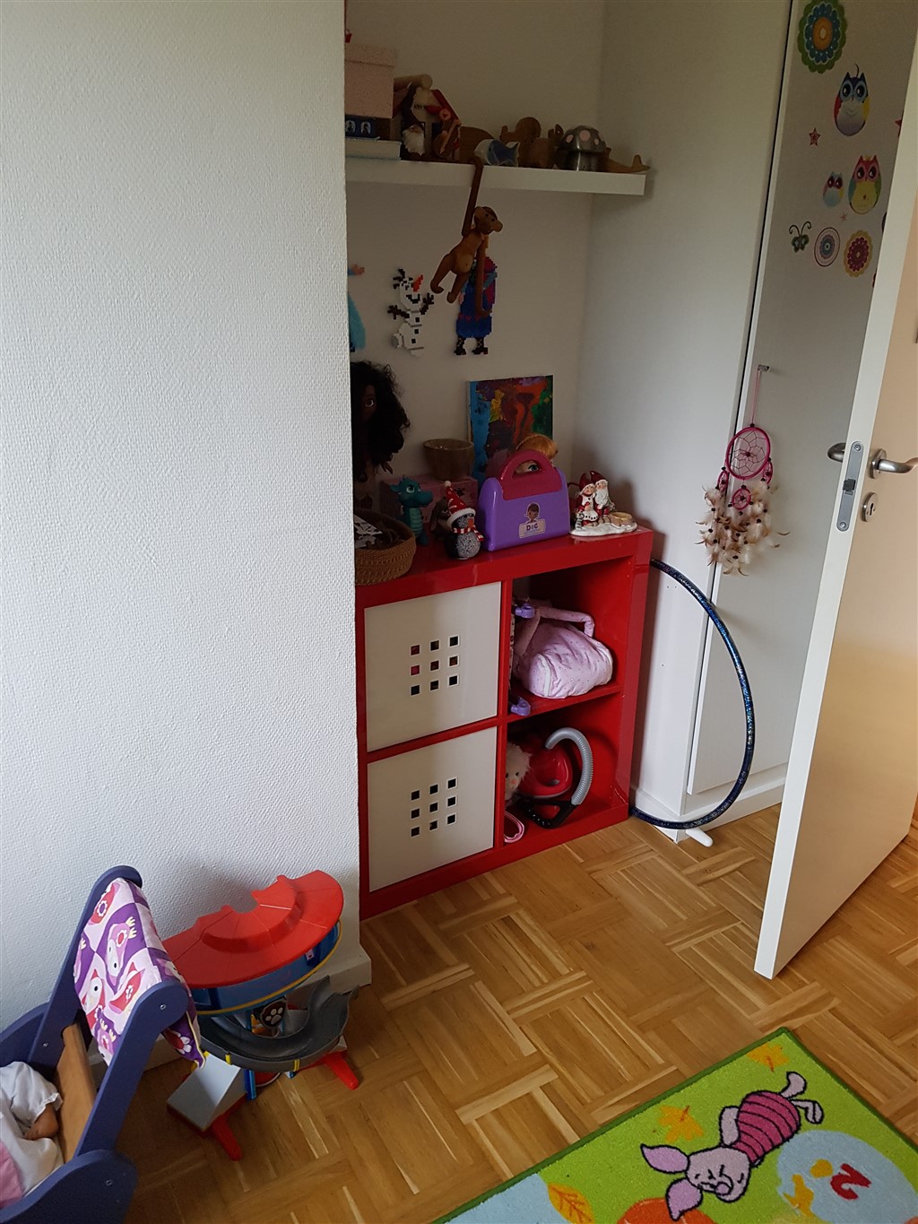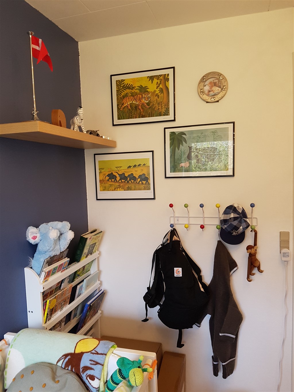 På et tidspunkt skal hun nok have en højere reoll med plads til flere ting, for at rydde noget gulvplads, og noge opbevaring under sengen evt til bamser og bolde, så kurvene ikke fylder på gulvet. Dog bruger hun ikke rigtig værelset endnu. Hun er 3.