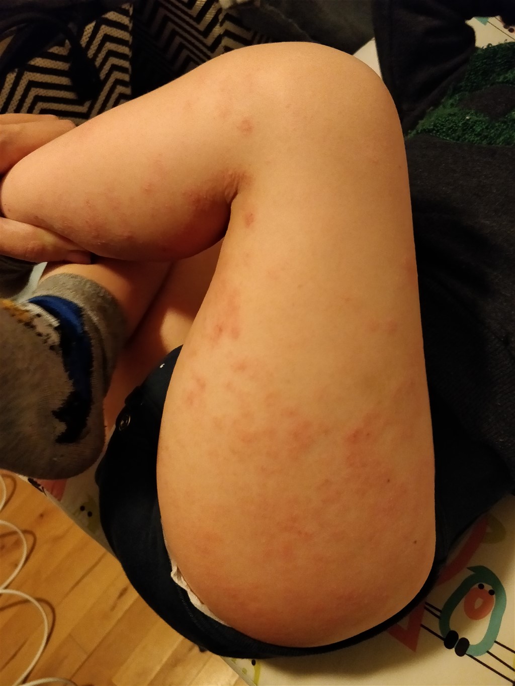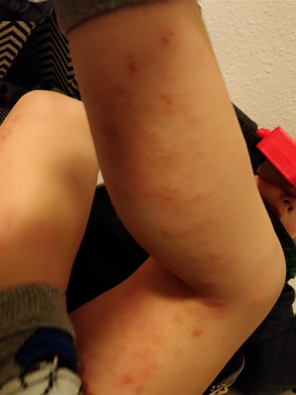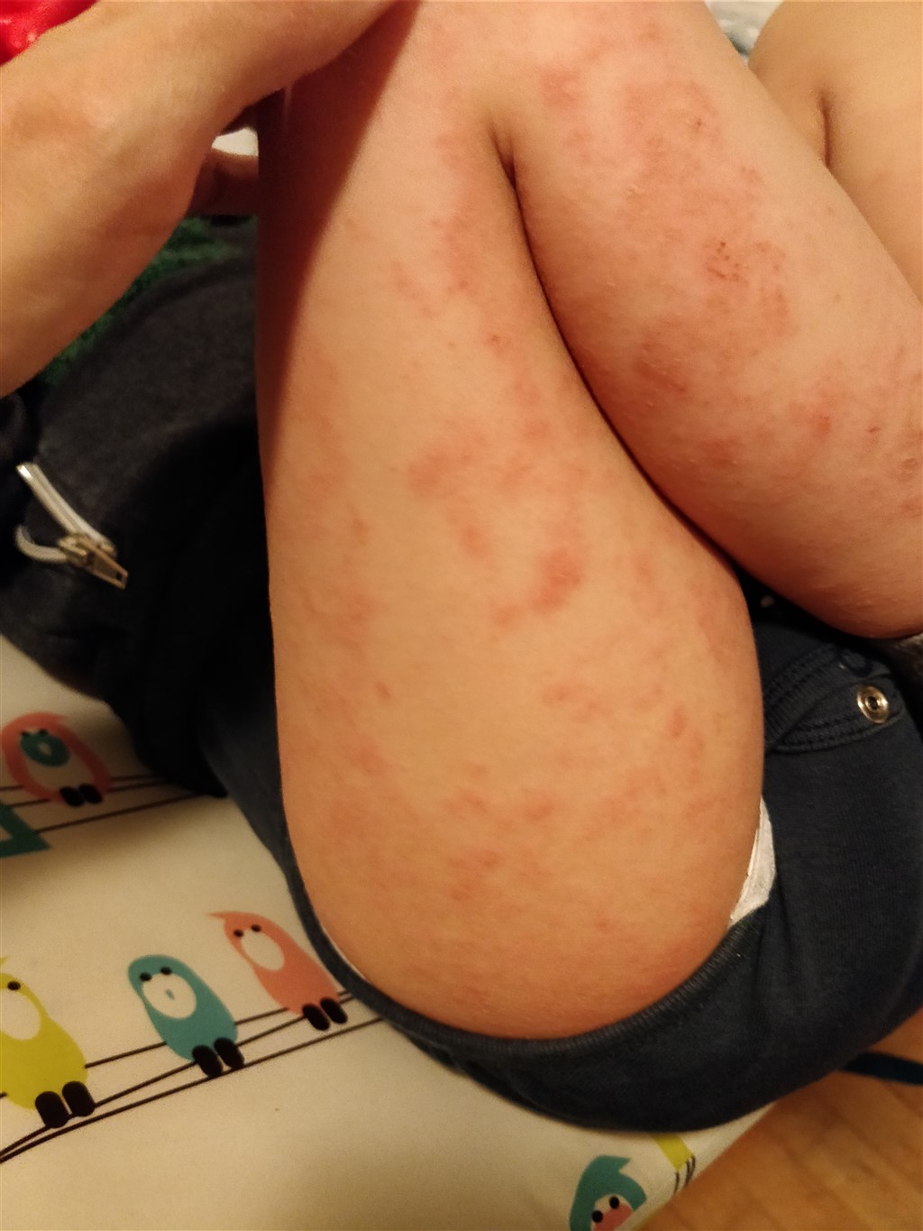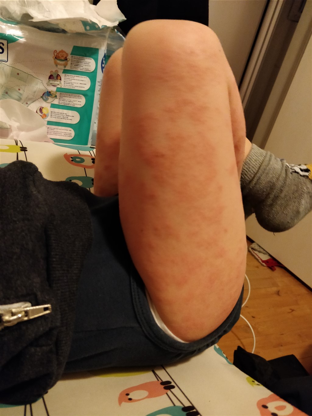 Ps. Inden han kommer i seng bliver han smurt. Om aftenen er rødmen værst. Om morgenen er det bedre.