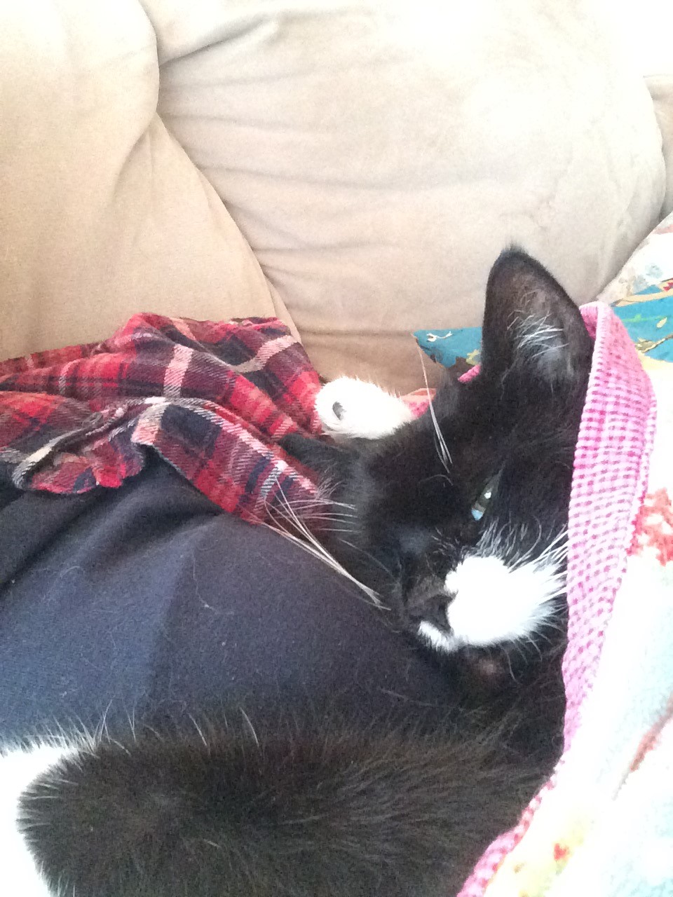 Så nu har jeg lagt foldemadrasserene ud på gulvet i stuen, så nu ligger jeg og putter med ham, fordi han ik er sikker på benene endnu, og ik ka styre sine hop, uden at falde på hovede omkuld.