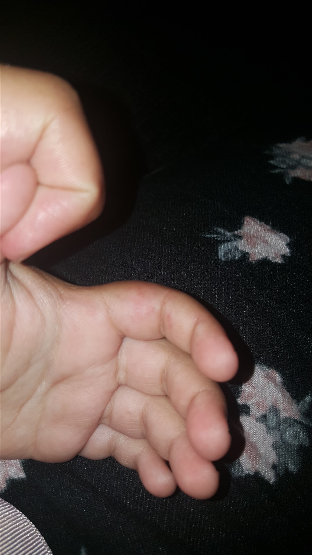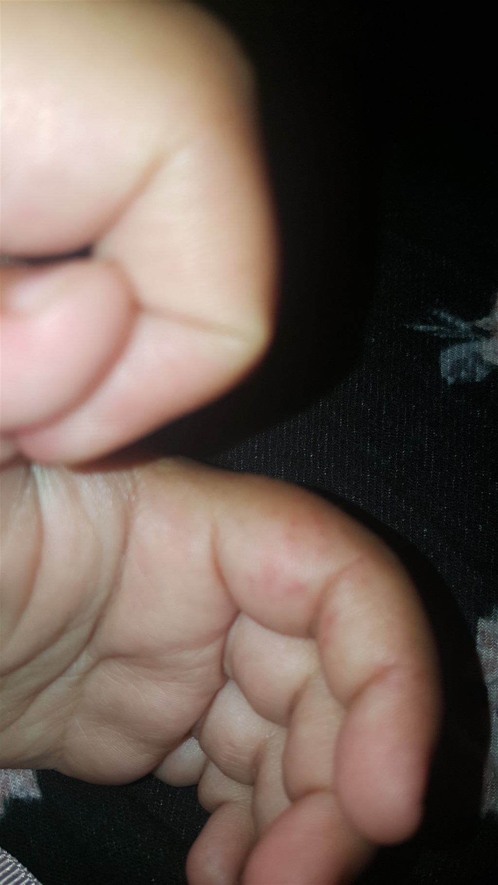 Hvad kan det her vœre ? Han har det kun på fingerne ? Og tag self med ham til lœge imorgen. Men hvad synes i ?