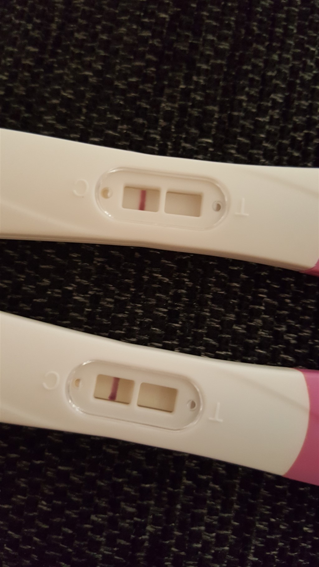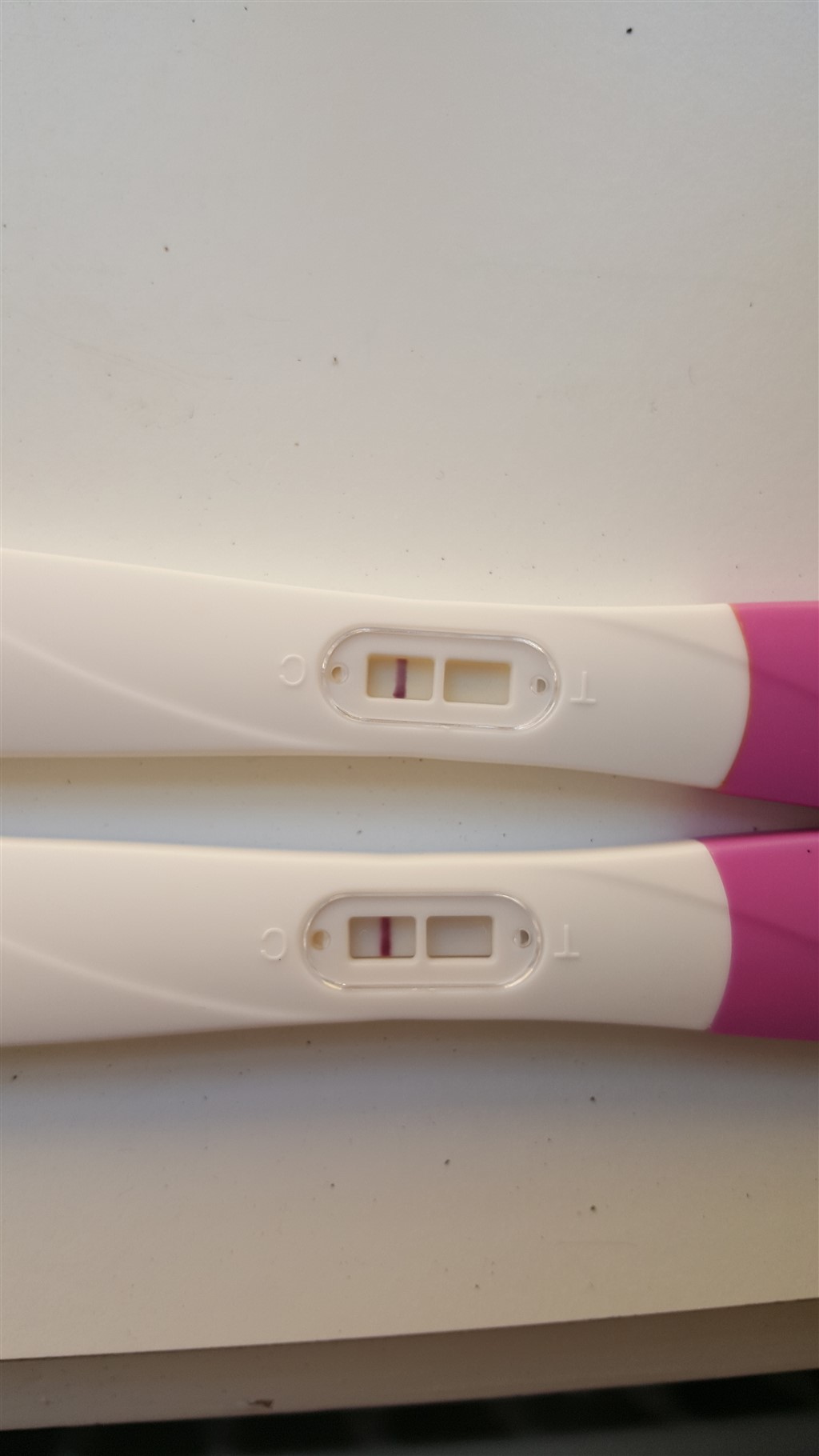 Uanset hvad, så ser de desværre negative ud. Jeg kan måske ane noget på det første billede, men hvis det er teste fra Valmed, så ville jeg ikke stole på dem, når det er så svagt. De har en kedelig tendens til at lave skyggestreger.