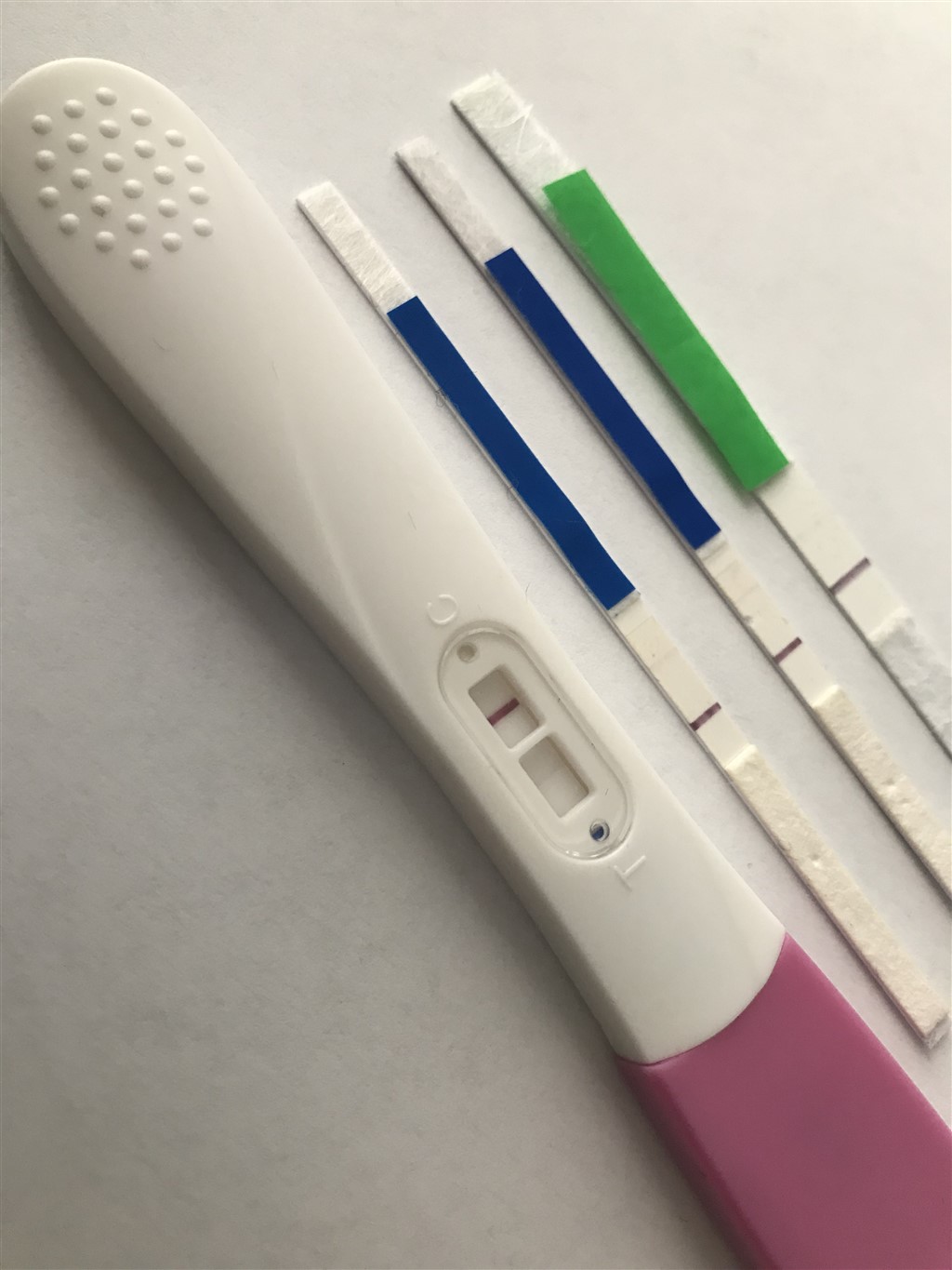 Den nederste er fra i dag, dog kom stregen først 25-30 sek efter tid. Hvis jeg er gravid burde jeg være 3+2 henne. Kan det lade sig gøre??