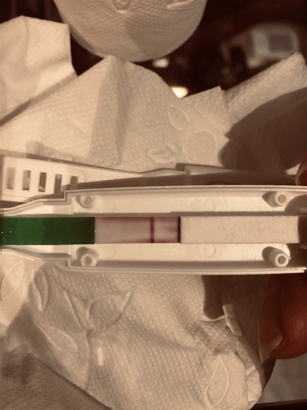 Jeg har to gange nu testet med to forskellige test hvor den blev svagt negativ indenfor tid men efter 10-20 min var stregerne væk. ( Altså nr.2 streg. )