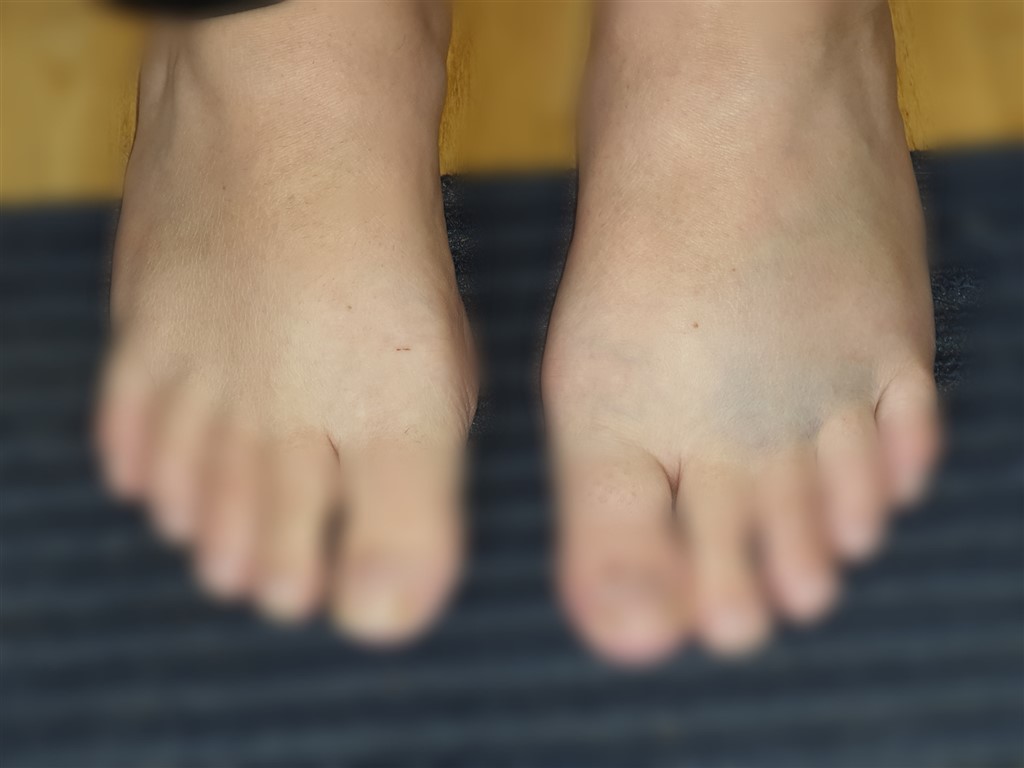 Jeg var blå fra spidsen af de 3 yderste tær, hele foden og hele vejen op til knæet.