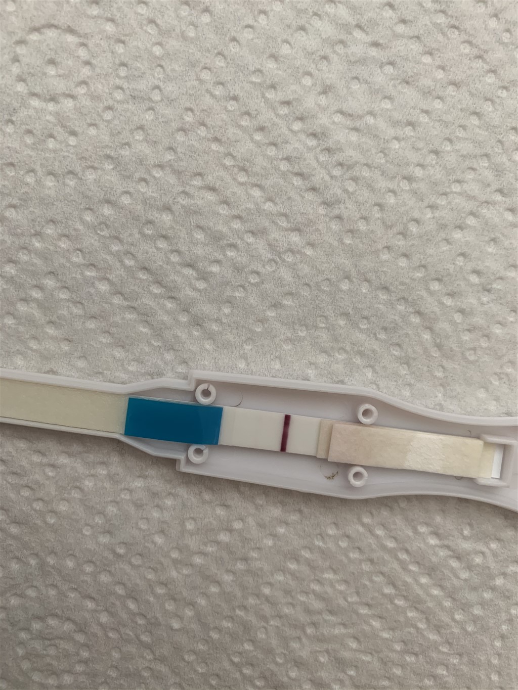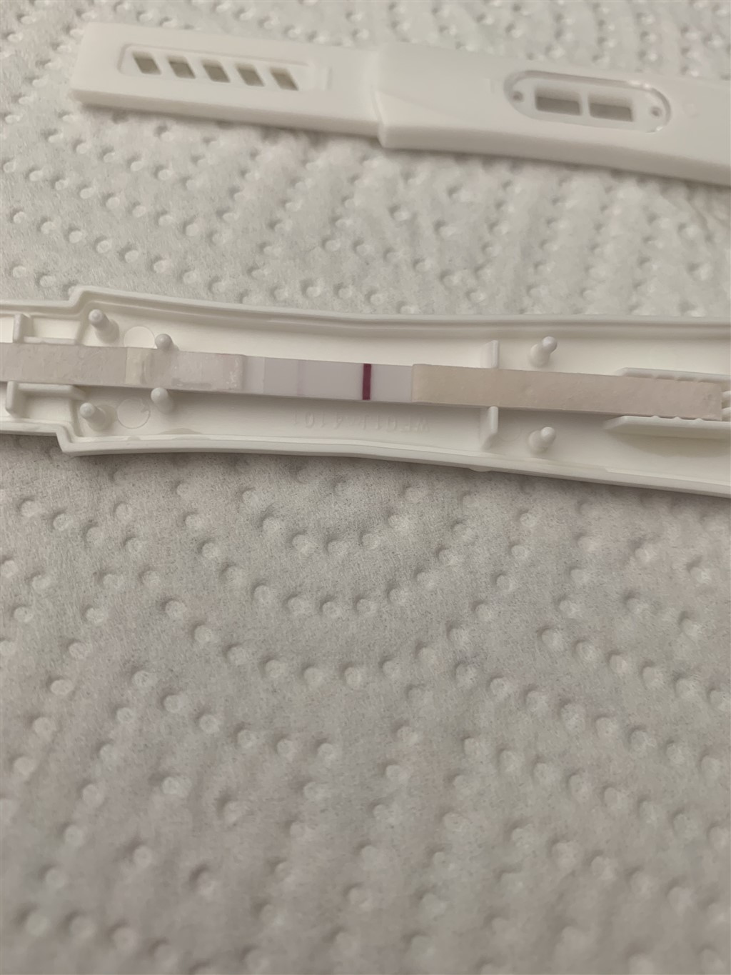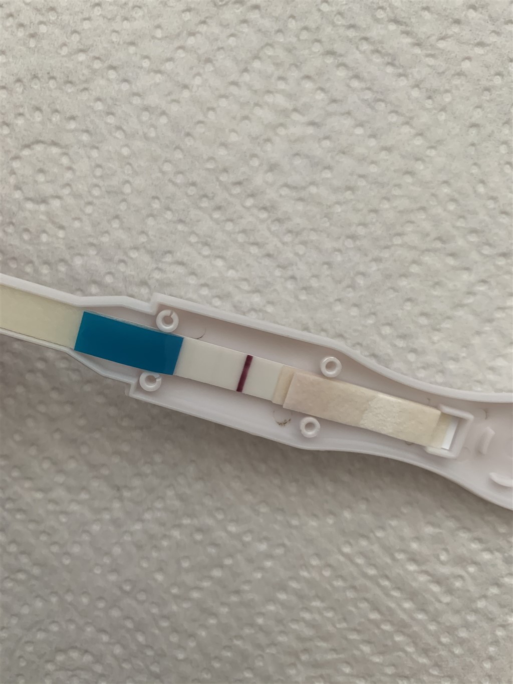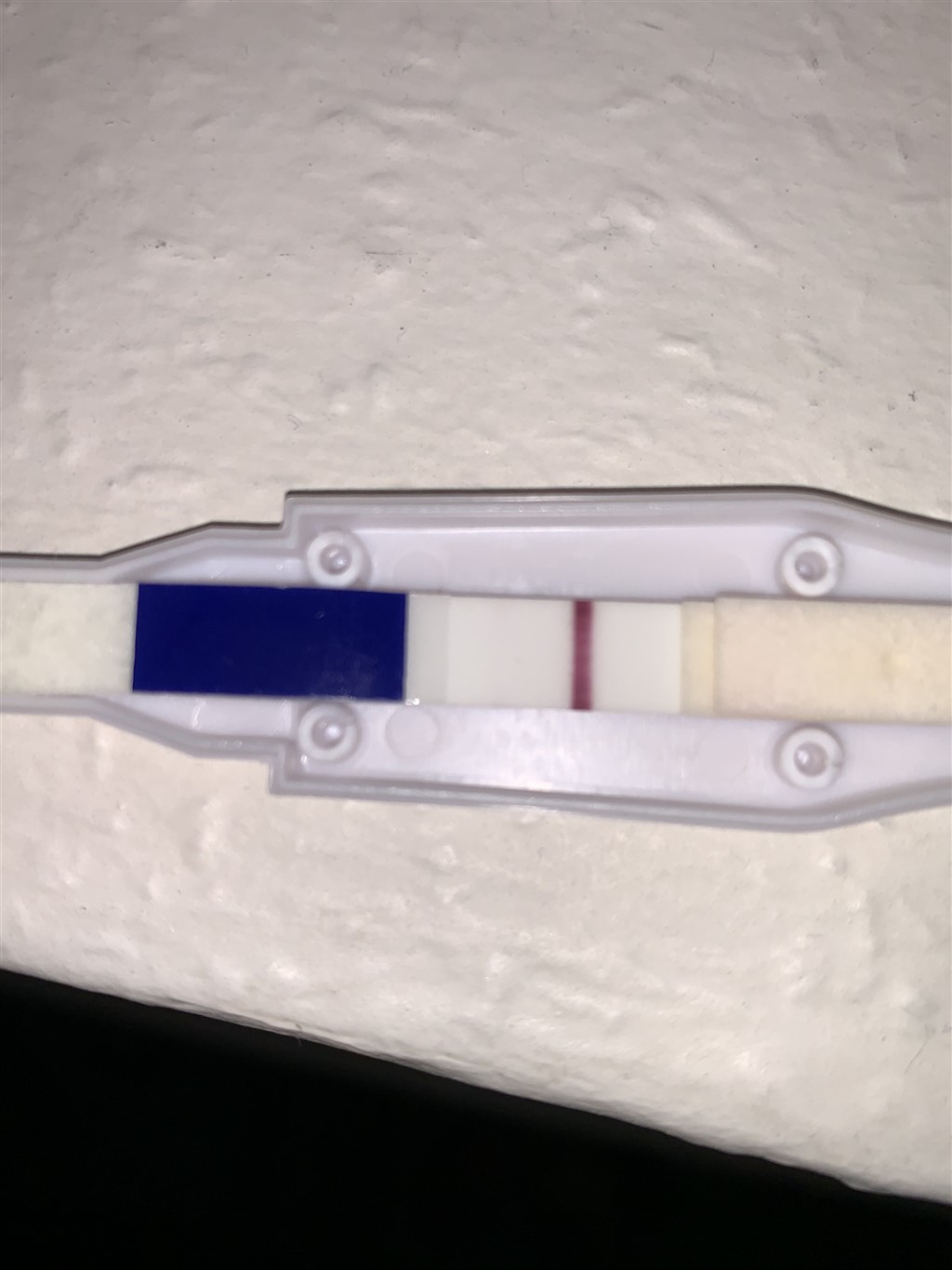 Jo h is der er farve i stregen så er den god nok. Dog kan jeg ingenting se på denne test. Så jeg ville sige den var negativ og prøve at teste igen om et par dage