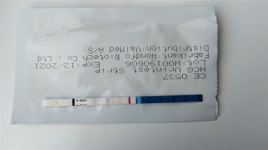 Da jeg var 4+1 kom der en skyggestreg med farve i, den var ikke helt tydelig men heller ikk utydelig, så ringede til min fertilitetsklinik og fortalte om testen. De fik mig til at book en blodprøve 2 dage senere og da viste HCG på 297 hvilket var højere end hvad jeg før havde haft i blodprøverne.