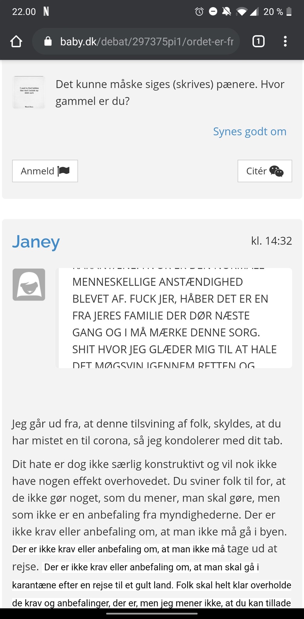 Jeg kan godt forstå, at du er vred over at have mistet en pårørende, og personen skulle selvfølgelig være gået i karantæne, når hun havde sygdomstegn, men hvis hun har været i et gult land, er der ingen krav om karantæne medmindre man har sygdomstegn, så at rase mod alle der rejser i overensstemmele med myndighedernes anbefalinger og kalder dem møgsvin er ude af proportioner.