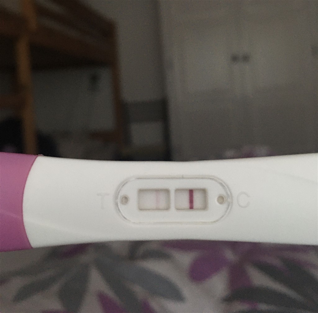 Jeg tog en graviditetstest i går, hvor jeg syntes at jeg kunne ane en streg. Derfor tog jeg en igen i dag, og synes at stregen er blevet tydeligere - jeg burde være 3+6, hvis den er der.
