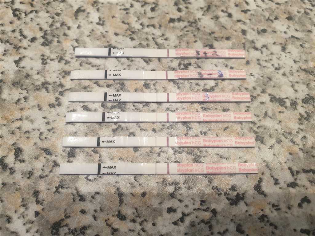 Jeg tager en test hver morgen for at se, om jeg kan se en udvikling, men de sidste 4 dage, er teststregen ikke blevet mere synlig.