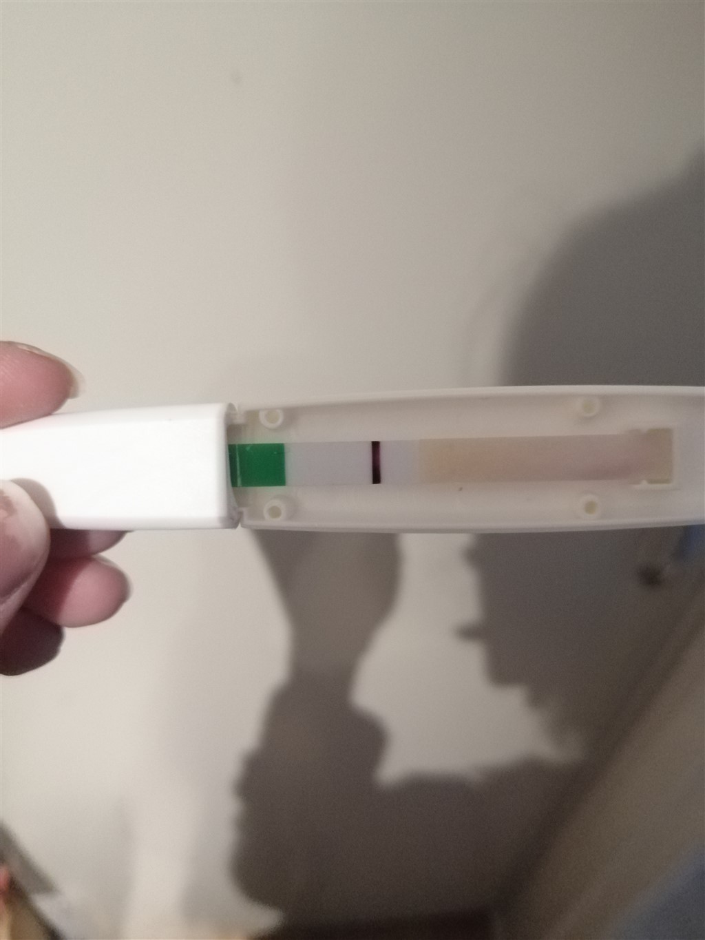 Jeg synes det er meget svært at se, om der er farve i den. Det ligner det ikke, at der er.... men lyset er lidt dårligt. Krydser for, at din skygge udvikler sig