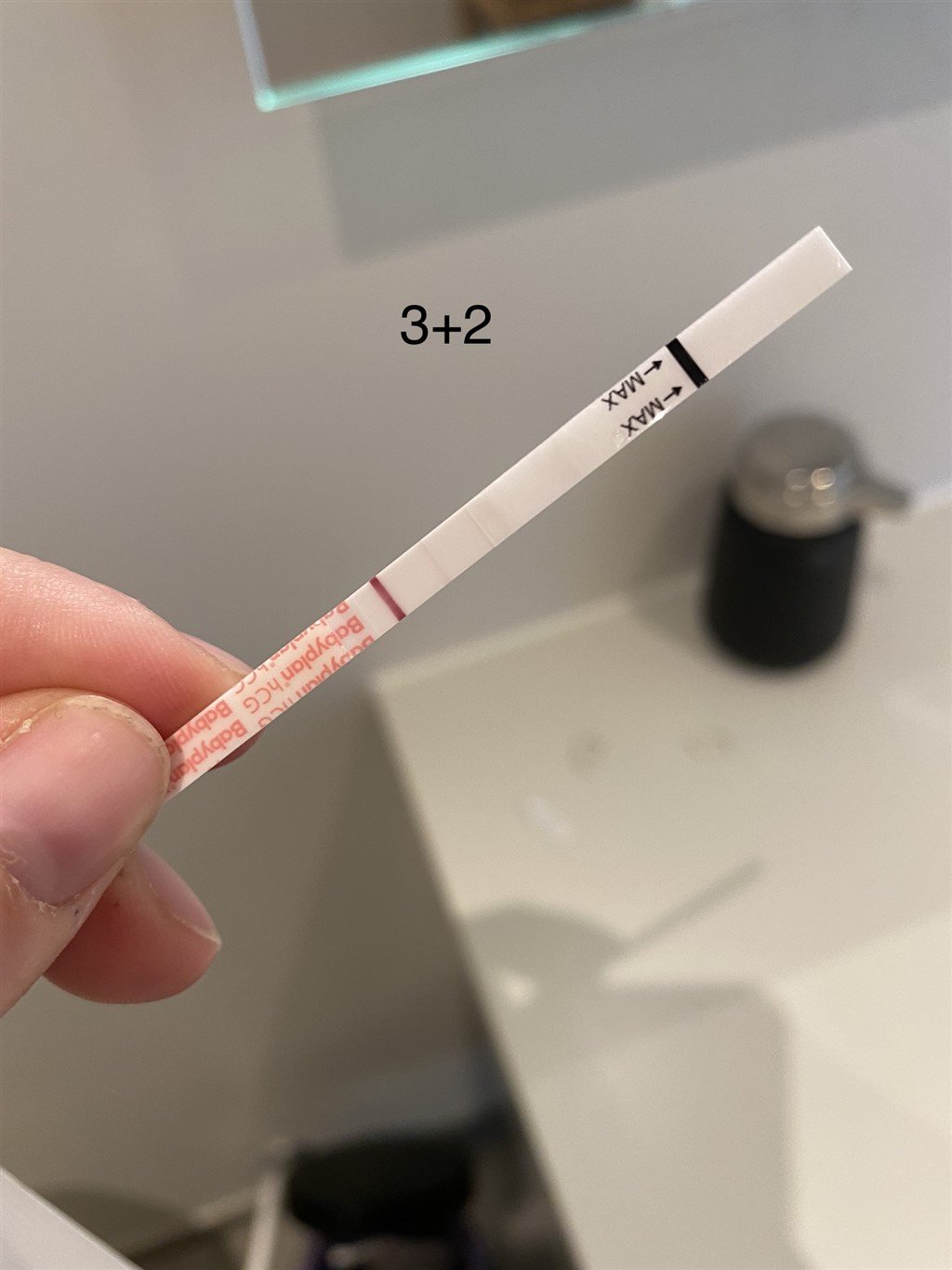 Jeg testede også positiv på en babyplan, da jeg var 3+2. Meget, meget svagt dog.