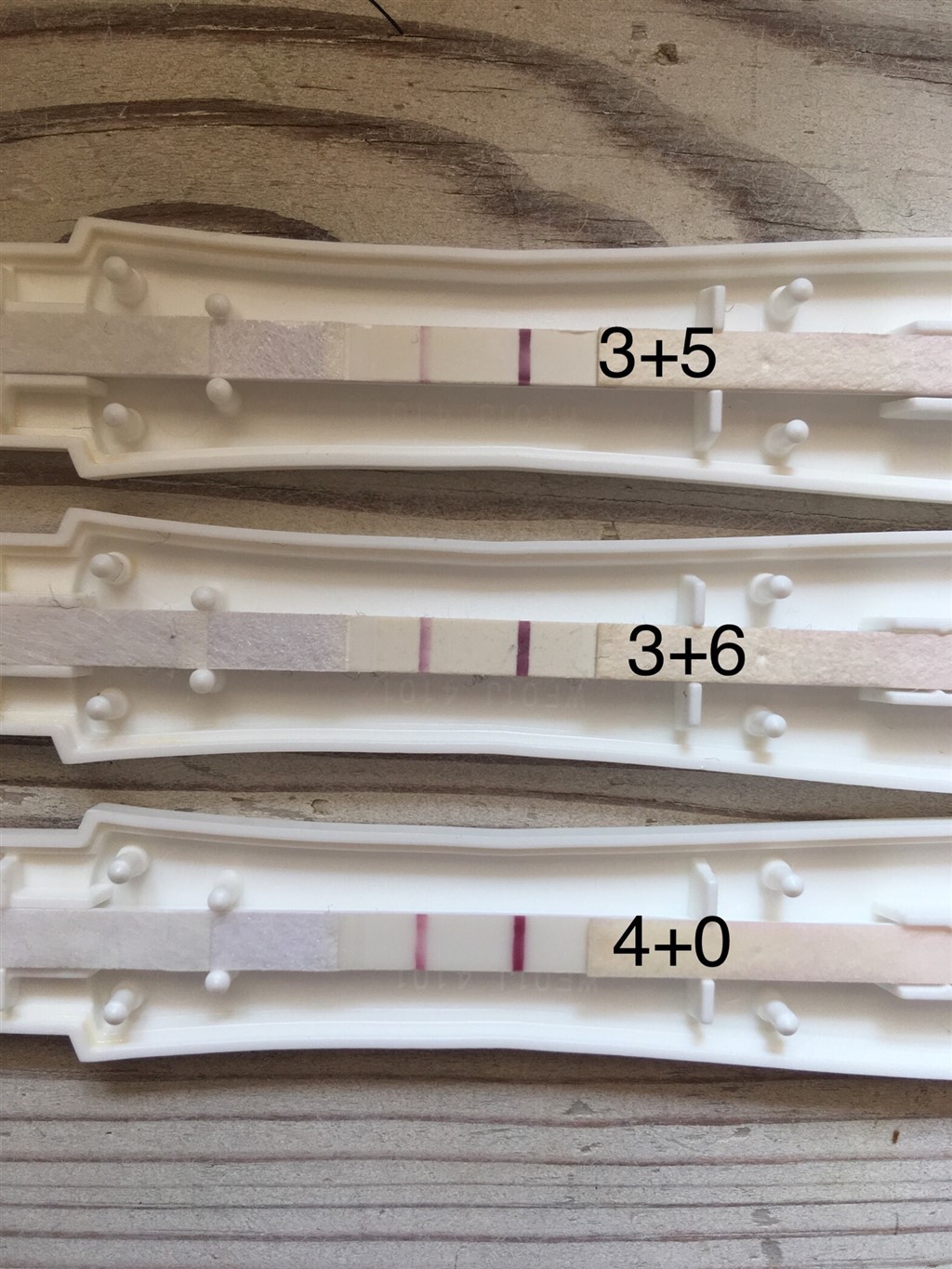 Jeg har testet positiv siden 3+2 og er nu 4+0. Tydeligere test og ingen blødning